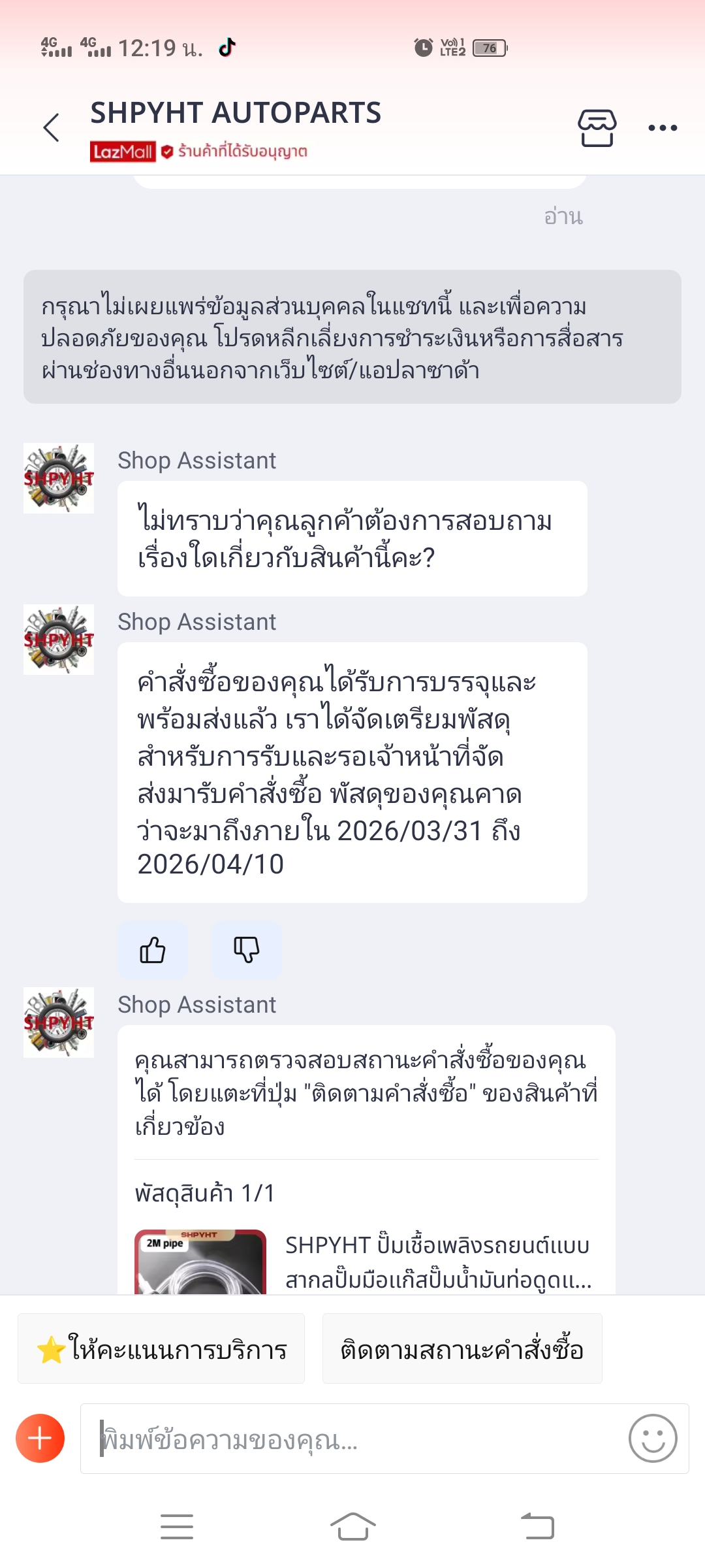 พอดีสั่งสายดูดน้ำมันวันที่ 27 เดือน3ทาง app แจ้งว่าของจะมาถึงภายใน 3-5 วันแต่พอถึงใน app แจ้งว่าของจะมาถึงวันที่ 10-14 เมษายนพอดีถึงวันที่ 10-14 ของก็ยังไม่ถึงเดือนเป็นวันที่ 10-14 เดือนสิงหาคมเราต้องทำยังไงได้บ้างครับพอดีจ่ายเงินไปแล้วแต่ไม่ได้รับของเลื่อนวันส่งไปเรื่อยจนเงินไม่ได้มาก ติดตามสถานะก็ไม่ได้ แถมเลื่อนส่งไป4เดือน