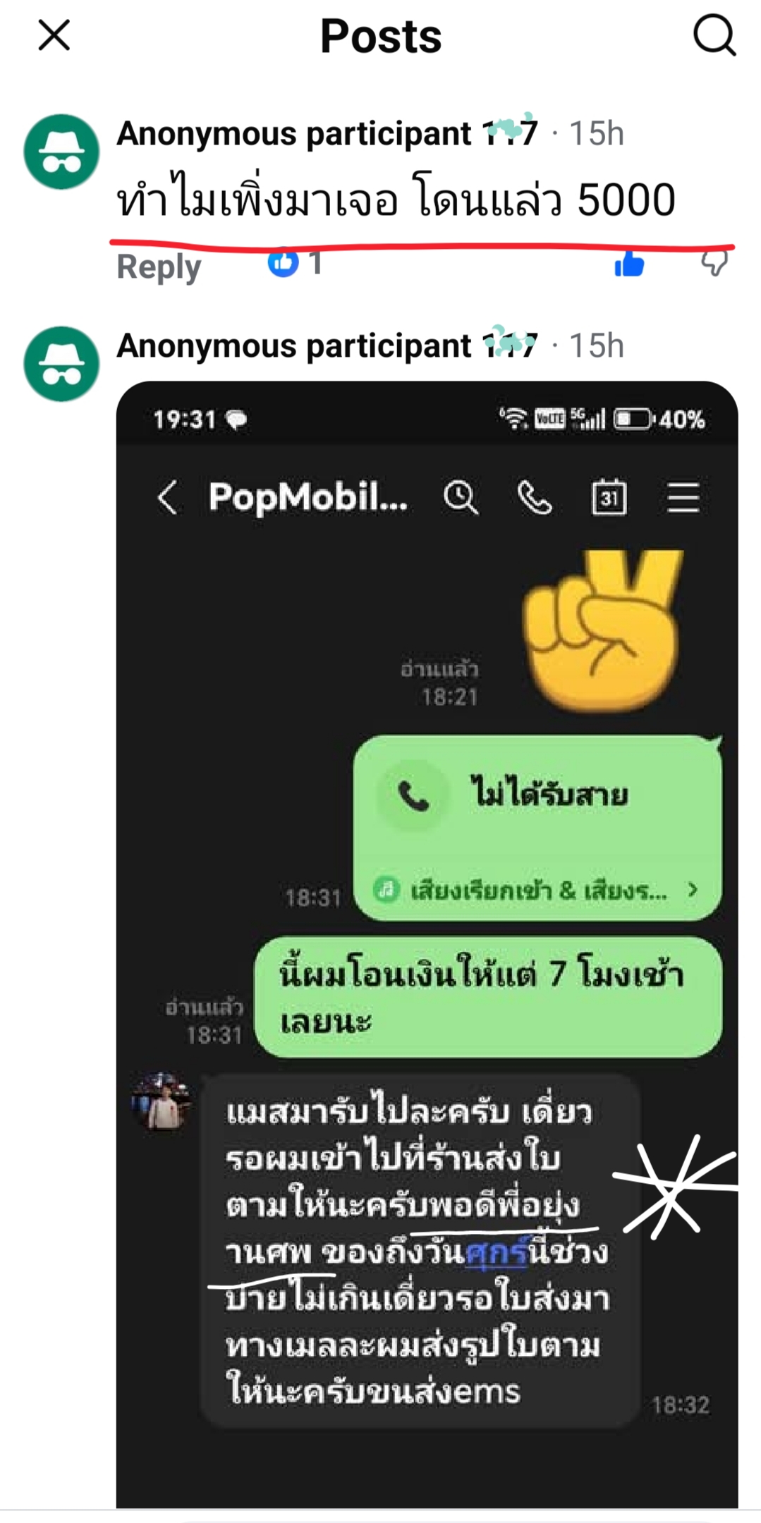 ผู้เสียหาย เผลอ โอนเงิน ไป แล้วพึ่งมาพบ การโพสต์เตือน ทาง