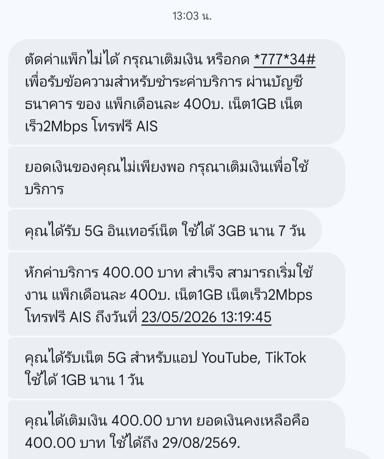 ซื้อซิมเทพของทรู 20mbps 1 ปีไว้ ก็เติมเงินไว้ 100 บาท แต่พอวันนี้โปรหมดแต่กลับไม่มี SMS แจ้งเตือนว่าหมดแล้ว เปิดเครื่องมามี SMS บอกว่ากินเงินค่าเน็ตไป 20 บาท 50 บาท แล้ว สรุปแล้วเหลือเงินในซิมแค่ 30.2