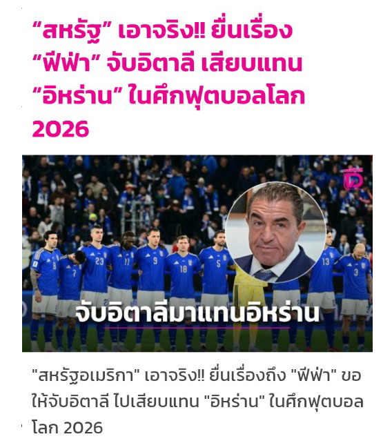 จะต้อง Playoffs กันอีกทําไม? สหรัฐฯทําเรื่องถึง FIFA ขอให้อิตาลีเสียบแทนอิหร่าน