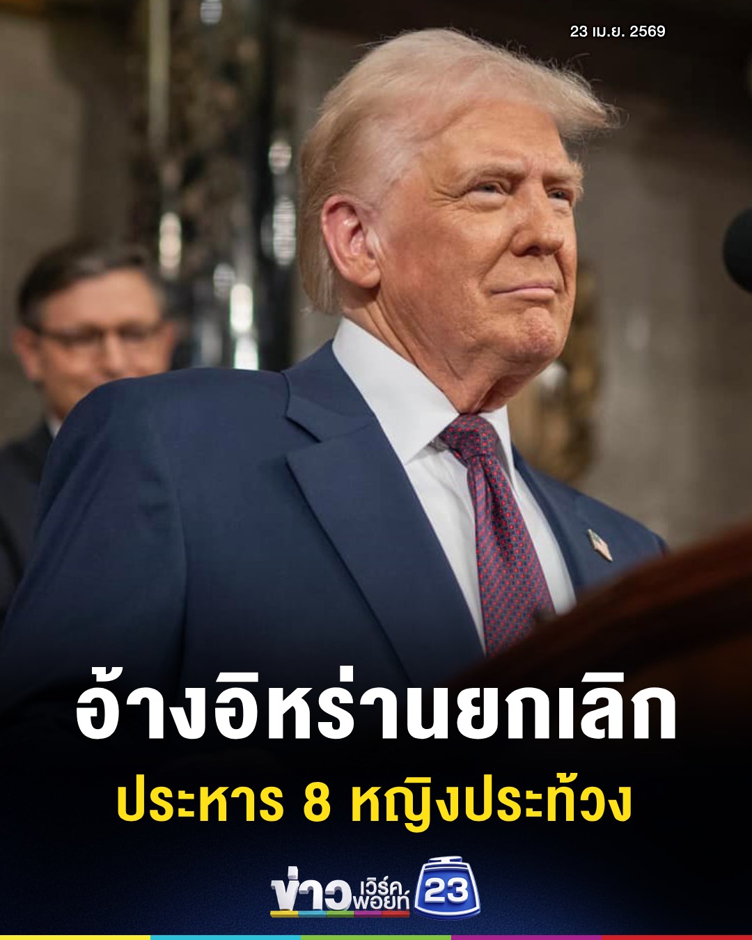 (23 เม.ย. 69) ประธานาธิบดี โดนัลด์ ทรัมป์ ของสหรัฐฯ โพสต์ข้อความระบุว่า ข่าวดีมาก! ผมเพิ่งได้รับแจ้งว่า ผู้ประท้วงหญิงทั้ง 8 คนที่กำลังจะถูกประหารชีวิตในคืนนี้ที่ประเทศอิหร่าน จะไม่ถูกสังหารอีกต่อไป โดย 4 คนจะได้รับการปล่อยตัวทันที และอีก 4 คนจะถูกตัดสินจำคุกเป็นเวลาหนึ่งเดือน ผมขอขอบคุณเป็นอย่างยิ่งที่อิหร่านและเหล่าผู้นำของอิหร่านให้เกียรติและตอบรับคำร้องขอของผม ในฐานะประธานาธิบดีแห่งสหรัฐอเมริกา และได้ยุติแผนการประหารชีวิตในครั้งนี้ ขอบคุณสำหรับความเอาใจใส่ในเรื่องนี้! ประธานาธิบดี โดนัลด์ เจ. ทรัมป์