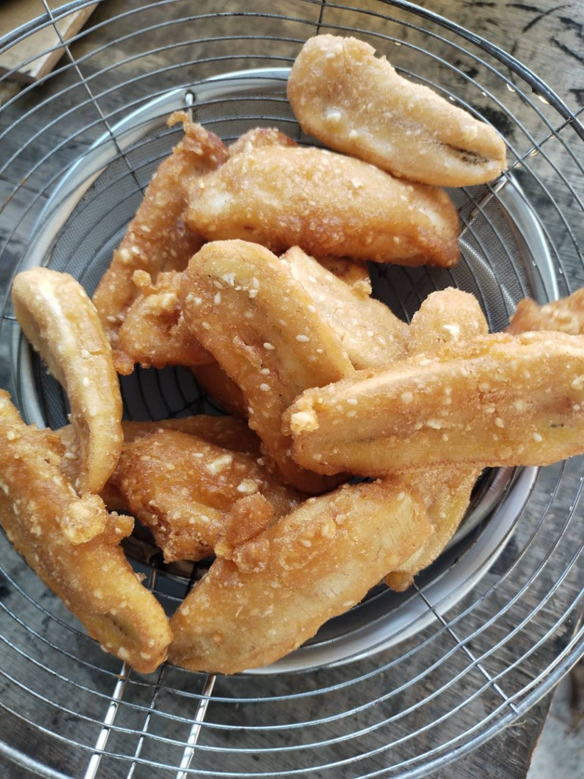 โดยวิธีของเราคือผสมแป้งไว้กลางคืนแล้วใส่กล่องพลาสติกแล้วแช่เย็นไว้คืนนึง ให้พวกน้ำตาลเกลือ ละลาย เช้ามาก็เอามาใส่ในกะละมังเตรียมทอดถ้าข้นมากก็เติมน้ำ วิธีนี้ช่วยทำให้แป้งกรอบขึ้นด้วยน่าจะเพราะความเย็น