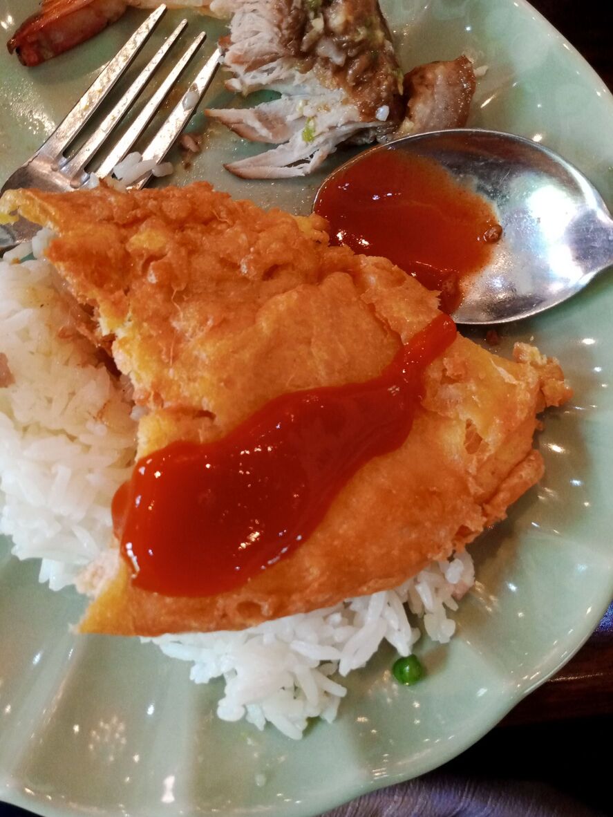 ไข่เจียว + ซอสมะเขือเทศ และ หมูฮ้อง อร่อยดี ไม่เผ็ดค่ะ
