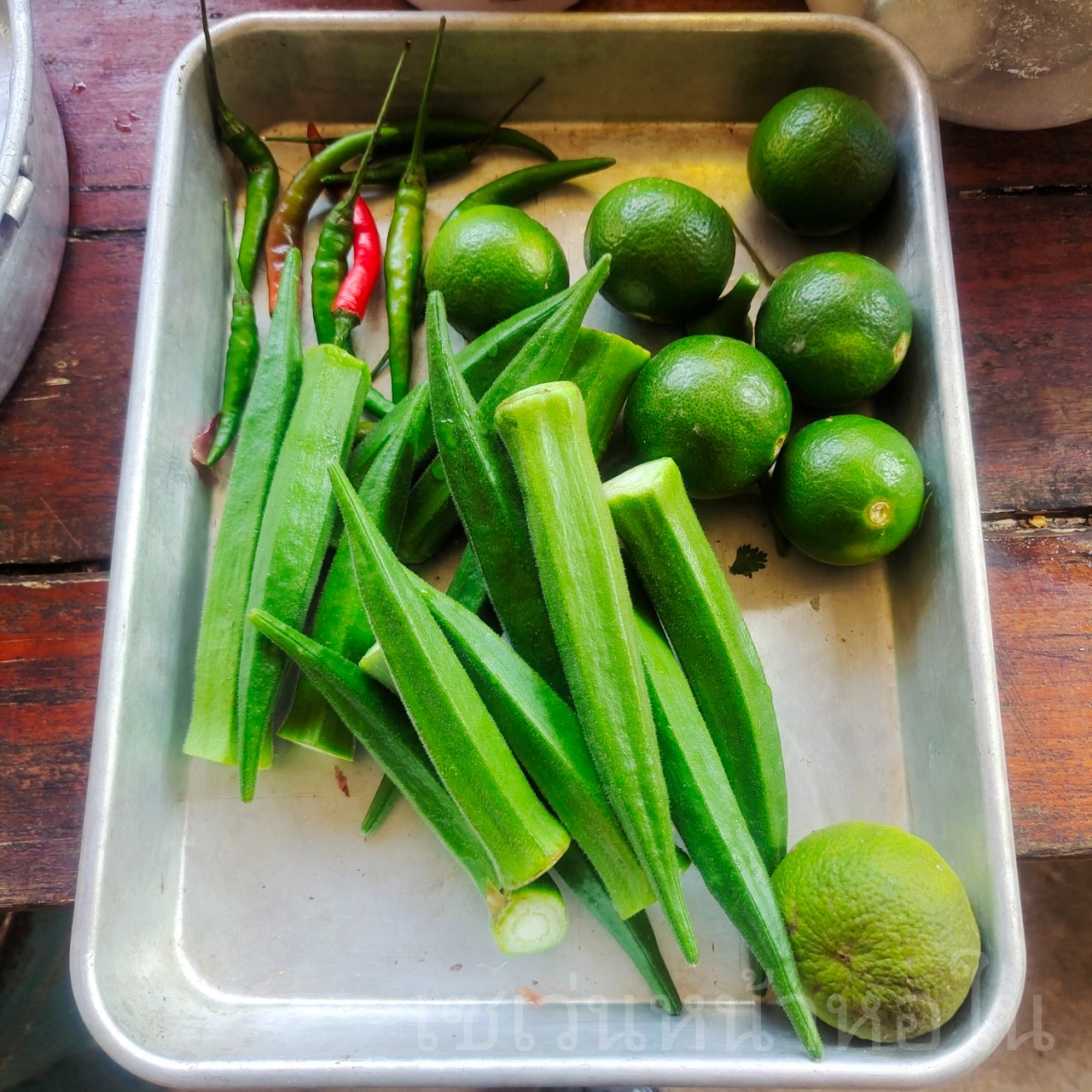 กระเจี๊ยบเขียว พริก มะนาว เก็บได้จากสวนคุณอา
