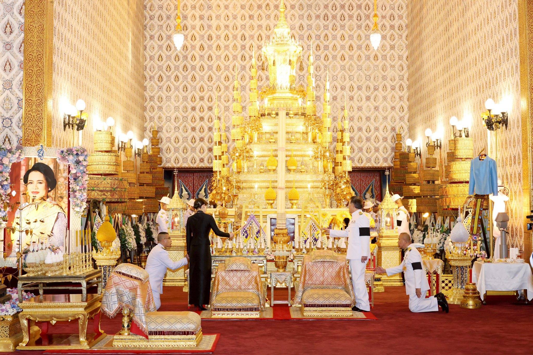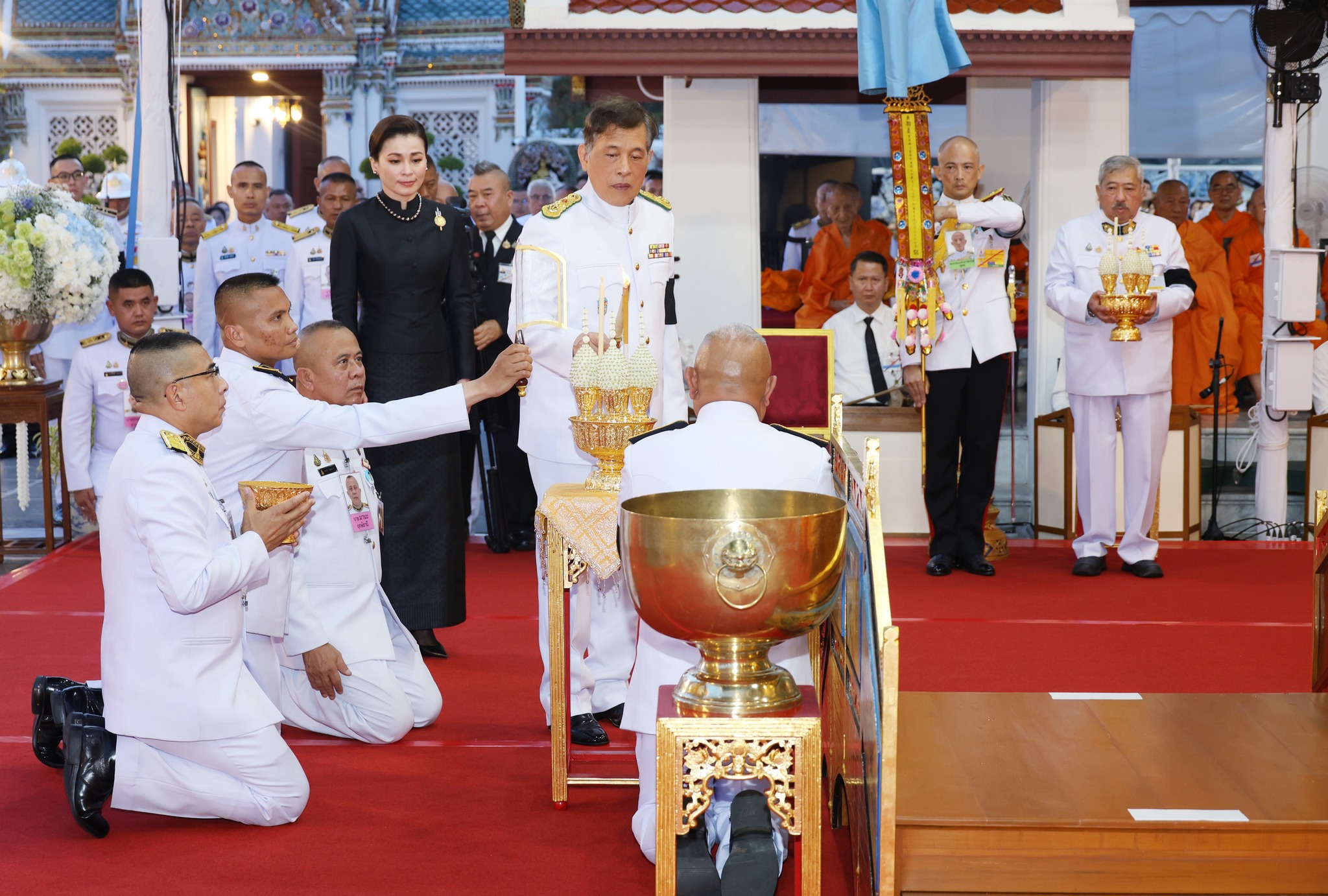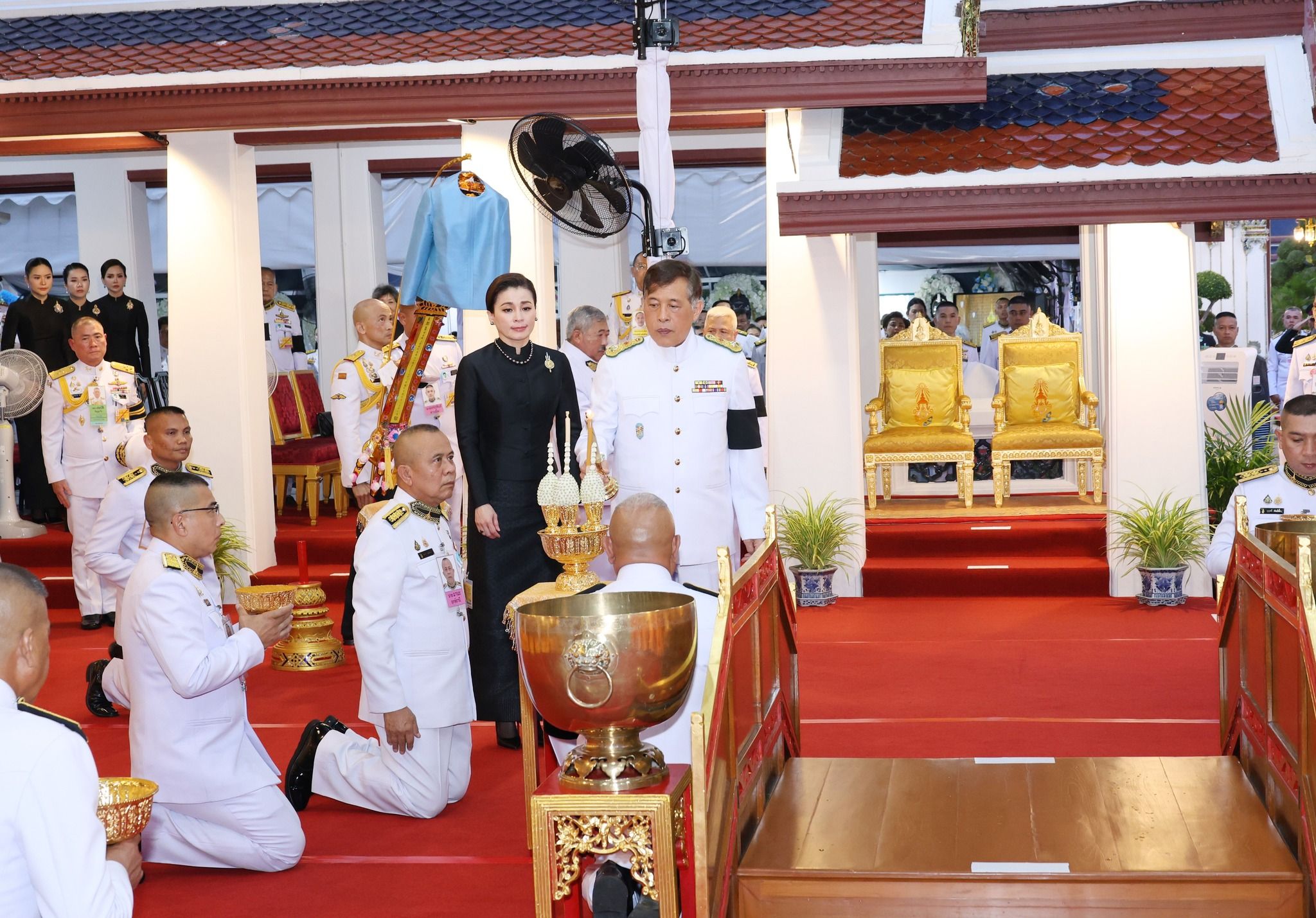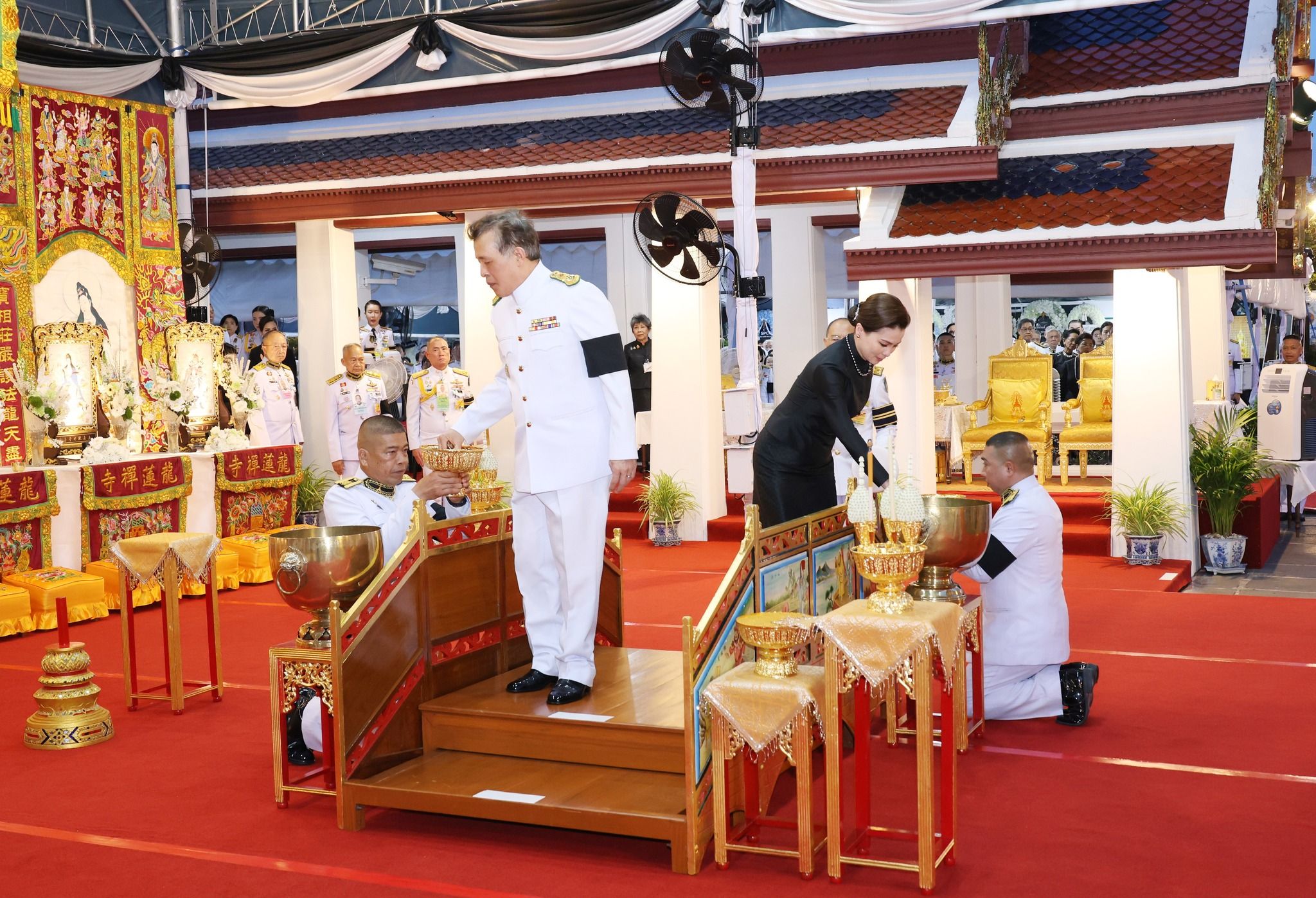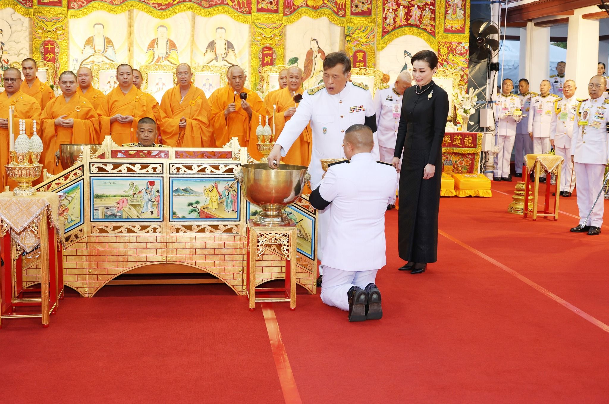 ในหลวง พระราชินี ทรงบำเพ็ญกุศลทักษิณานุปทาน (กงเต๊ก) ถวายพระบรมศพสมเด็จพระพันปีหลวง