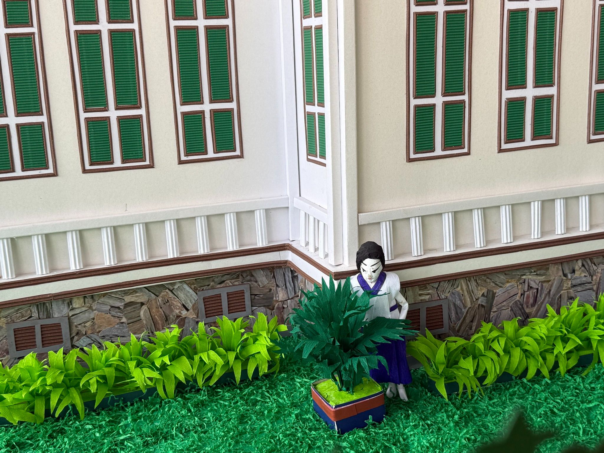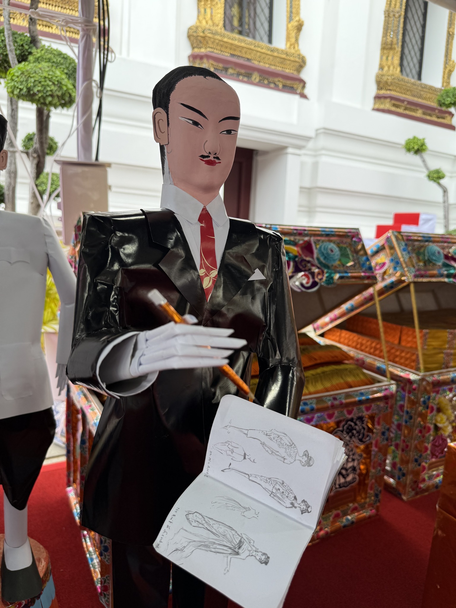 มีเครื่องกระดาษจัดทำเป็นพระตำหนักสวนจิตรลดารโหฐาน มีข้าราชบริพาร ตำรวจวัง ประจำประตูต่างๆ พร้อมเครื่องกระดาษข้าราชบริพาร มหาดเล็ก ข้าหลวง นางสนองพระโอษฐ์ จำลองชุดปฏิบัติงานเจ้าหน้าที่จริง จำนวน 17 คน ในจำนวนนี้รวมนายปิแอร์ บัลแมง เครื่องกระดาษชุดรถยนต์พระที่นั่ง มีสารัตถี 1 คน เครื่องกระดาษหีบเงิน หีบทอง ภูเขาเงิน ภูเขาทอง พระคลังเงิน พระคลังทอง เครื่องราชูปโภค