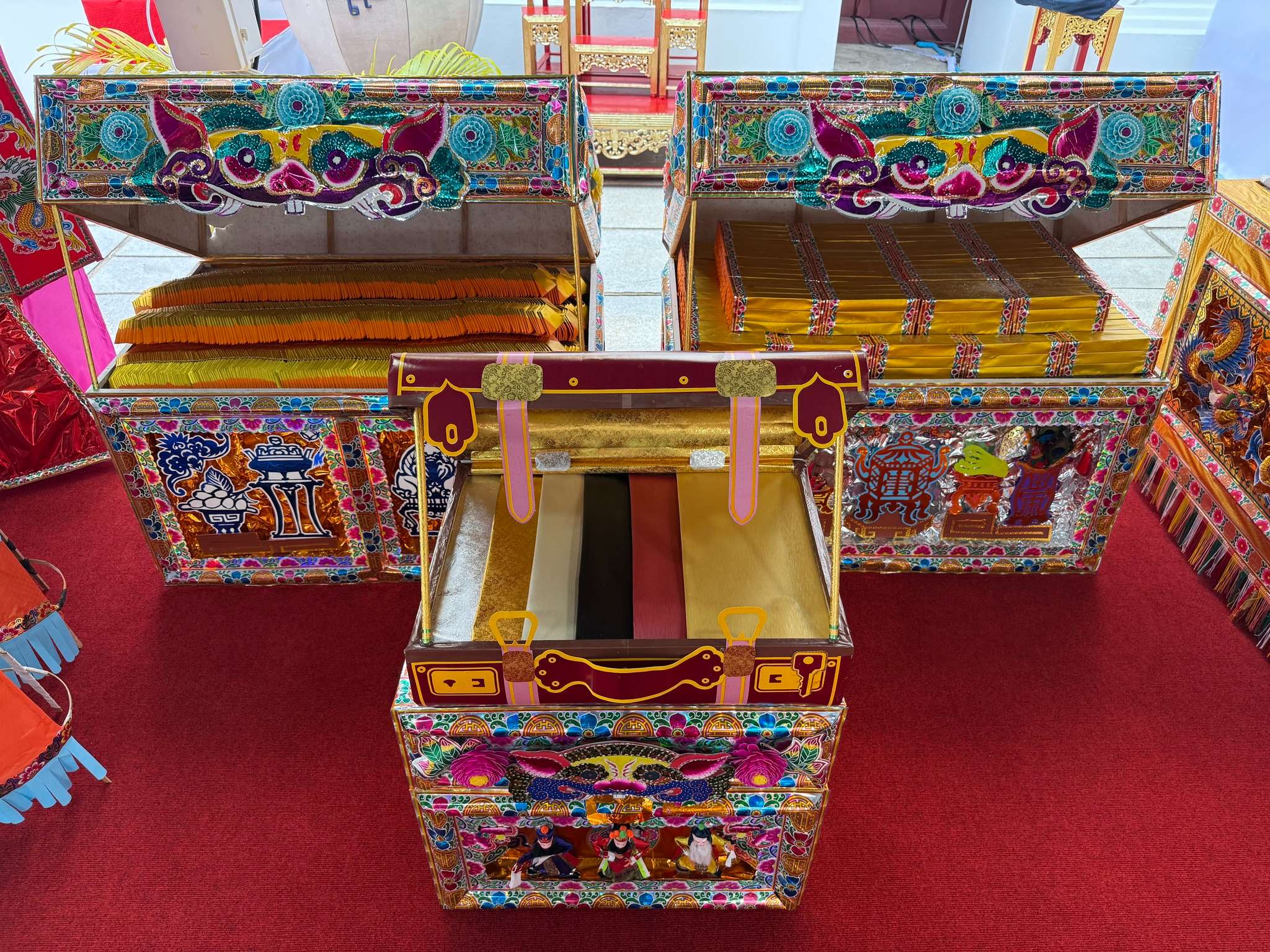 โดยเครื่องกระดาษในพิธีกงเต๊กหลวงจัดทำอย่างสมบูรณ์วิจิตรงดงาม ยิ่งใหญ่ และสมพระเกียรติในการถวายพระเกียรติพระบรมศพสมเด็จพระบรมราชชนนีพันปีหลวง ผู้ทรงเป็นที่รักยิ่งของพสกนิกรไทย ซึ่งเครื่องกระดาษถูกจัดทำอย่างละเอียด มีลักษณะสมจริง