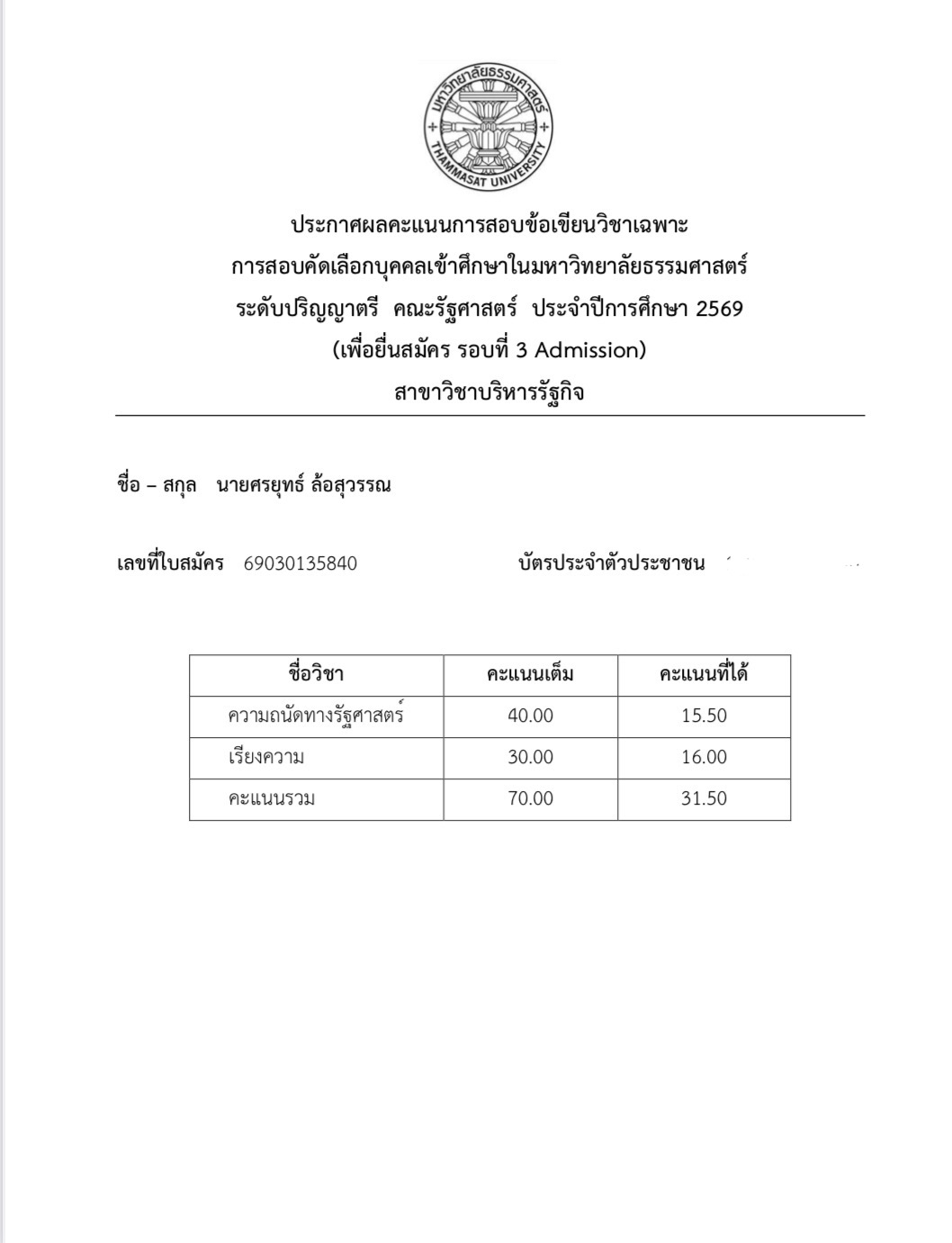 คือตอนนี้ผลสอบเฉพาะรัฐศาสตร์ออกแล้วคะแนนออกมาค่อนข้างแย่น้อยกว่าminปีที่แล้ว2-3คะแนนเลยคิดว่าจะไม่เสี่ยงดีกว่าเพราะส่วนตัวติดสังวิทมธตั้งแต่รอบแรกแล้วยอมเรียนคณะสำรองดีกว่าแต่ตอนนี้กังวลด้านcareer pathรู้สึกว่ามันค่อนข้างกว้างในระดับนึงแต่ไม่สุดสักทาง+ส่วนตัวอยากทำงานราชการด้วยเลยอยากถามคำถามดังนี้