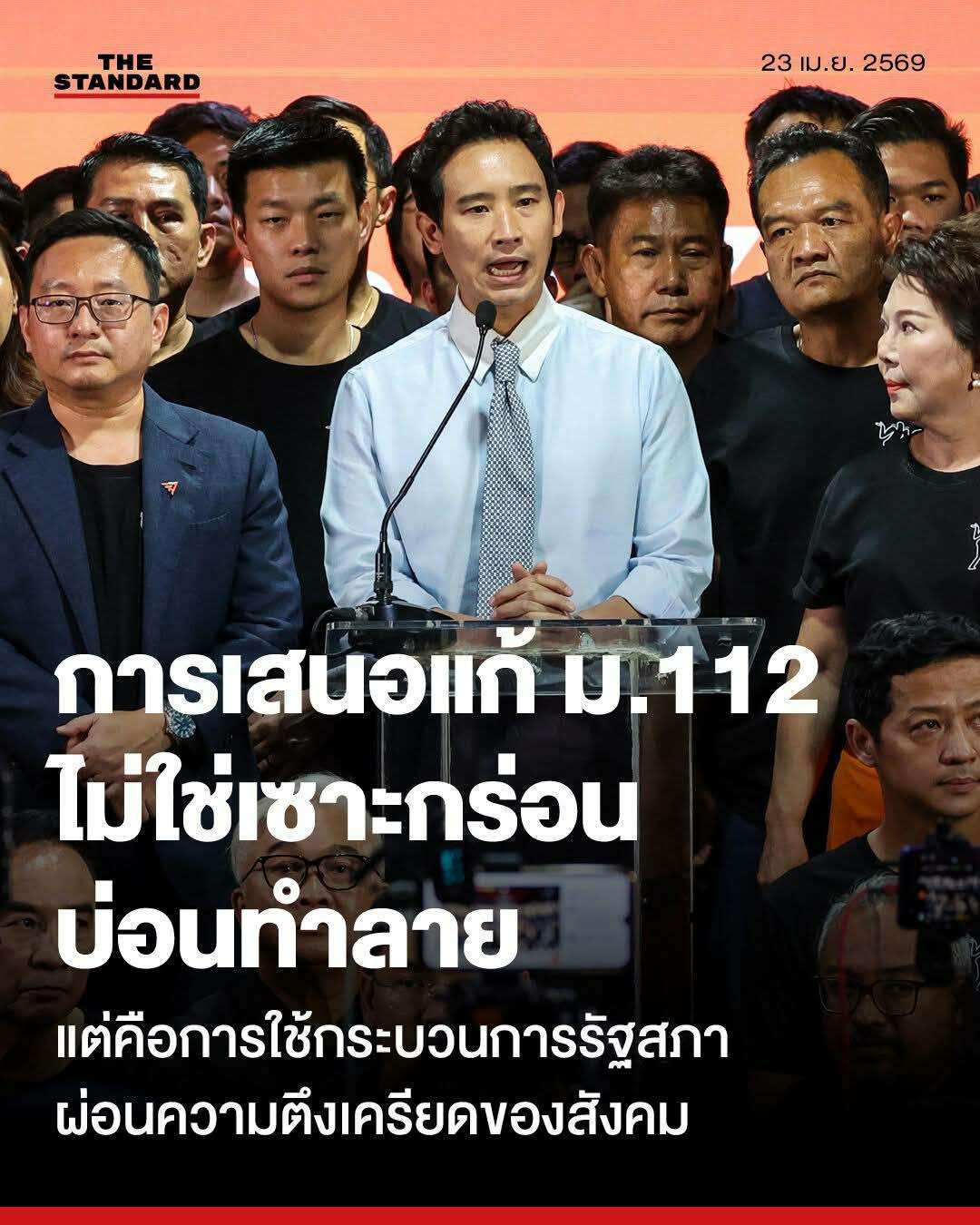 พิธา ลิ้มเจริญรัตน์ อดีตหัวหน้าพรรคก้าวไกล เผยแพร่ข้อความผ่านสื่อสังคมออนไลน์เพื่อชี้แจงเจตนาและข้อเท็จจริงกรณีการเข้าชื่อเสนอร่างพระราชบัญญัติ (พ.ร.บ.) แก้ไขเพิ่มเติมประมวลกฎหมายอาญา มาตรา 112 ของ 44 สส. อดีตพรรคก้าวไกล