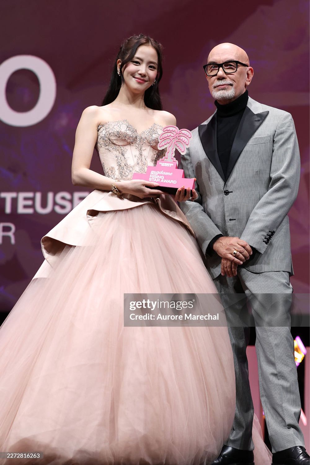 จีซูรับรางวัลที่งาน Cannes International Series Festival ในฐานะชาวเอเชียคนแรกที่ได้รับรางวัล Madame Figaro Rising Star Award ใส่ชุด Miss Sohee ที่ดีไซเนอร์เป็นคนเกาหลีใต้