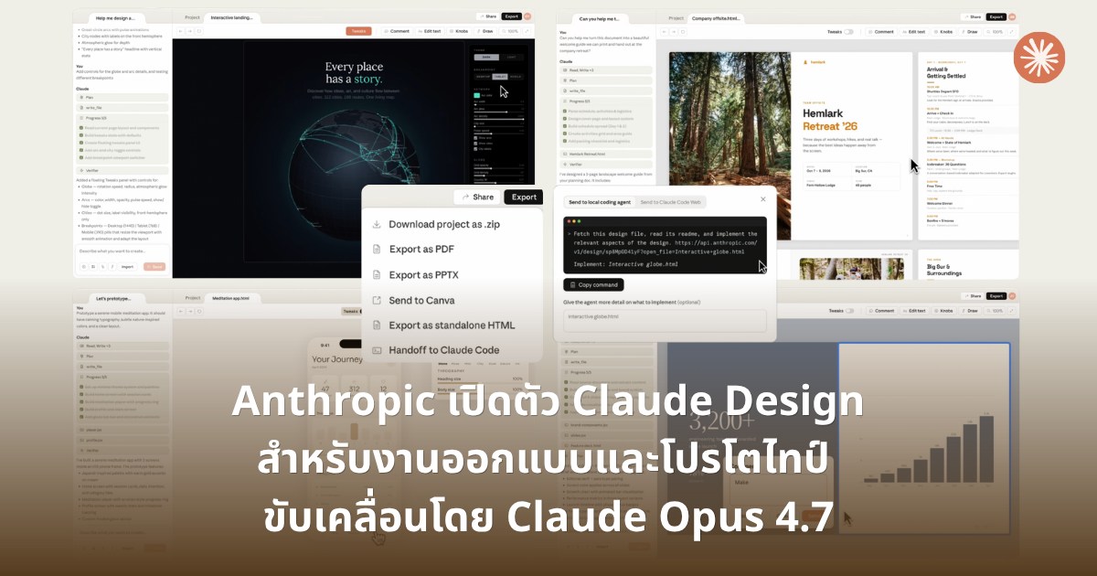 Anthropic เปิดตัว Claude Design ผลิตภัณฑ์ใหม่จาก Anthropic Labs ที่ออกแบบมาเพื่อให้คุณสามารถทำงานร่วมกับ Claude เพื่อสร้างผลงานด้านภาพได้อย่างครบวงจร ไม่ว่าจะเป็นงานออกแบบ (design), prototype, สไลด์, one-pager และอื่น ๆ