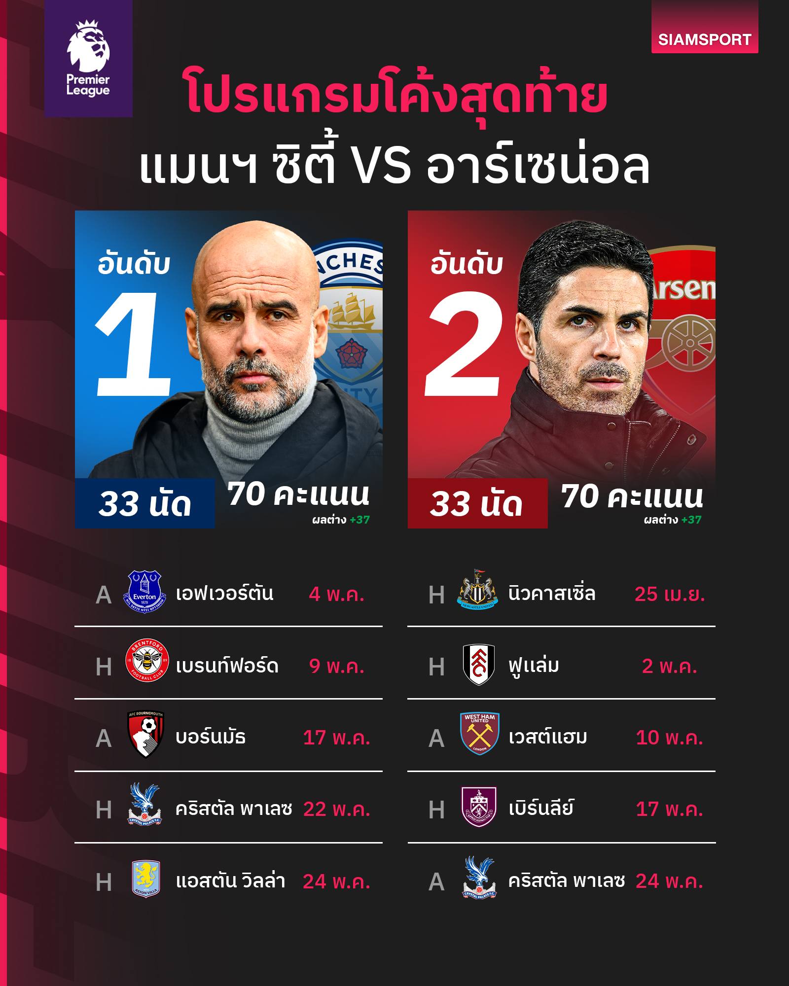 5 นัดสุดท้าย ตัดสินแชมป์ แมนเชสเตอร์ ซิตี้ หรือ อาร์เซน่อล?