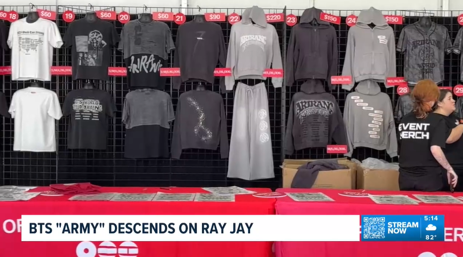 เธออธิบายว่าพวกเขาเคยไปดูคอนเสิร์ต BTS ที่ลาสเวกัสมาแล้ว และต้องต่อคิวซื้อสินค้าที่ยาวเหยียดมาก ครั้งนี้พวกเขาจึงตั้งใจแน่วแน่ว่าจะต้องเป็นคนแรกในแถวเพื่อเอาชนะฝูงชน และเมื่อบูธขายสินค้าที่แทมปาเปิดทำการ ก็มีคนหลายร้อยคนต่อคิวอยู่ด้านหลังพวกเขา เรียกได้ว่าพวกเขาทำภารกิจสำเร็จแล้ว