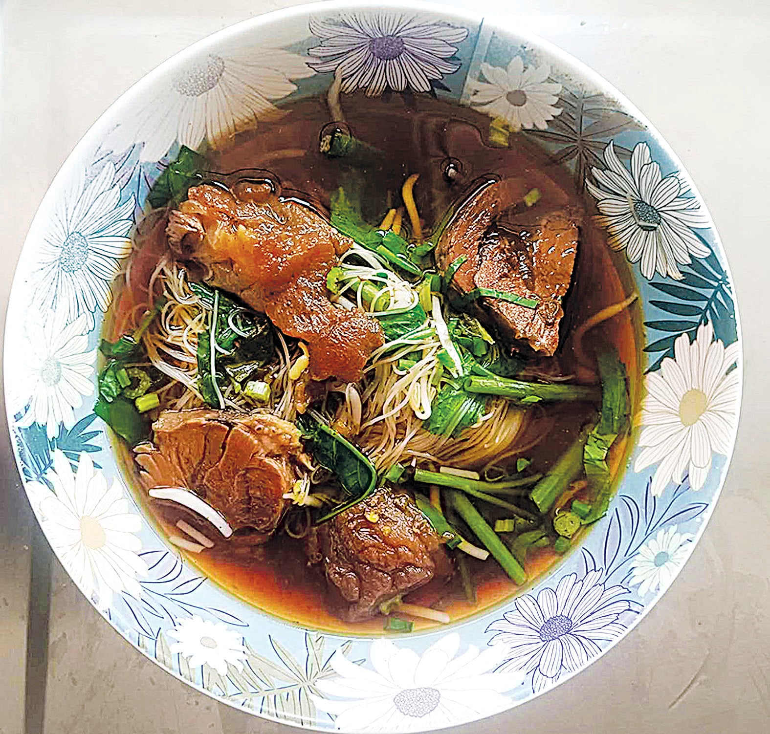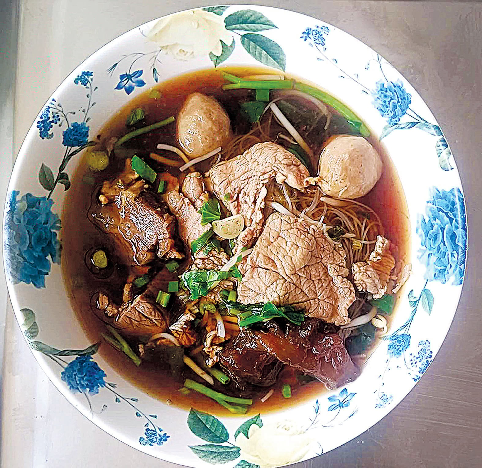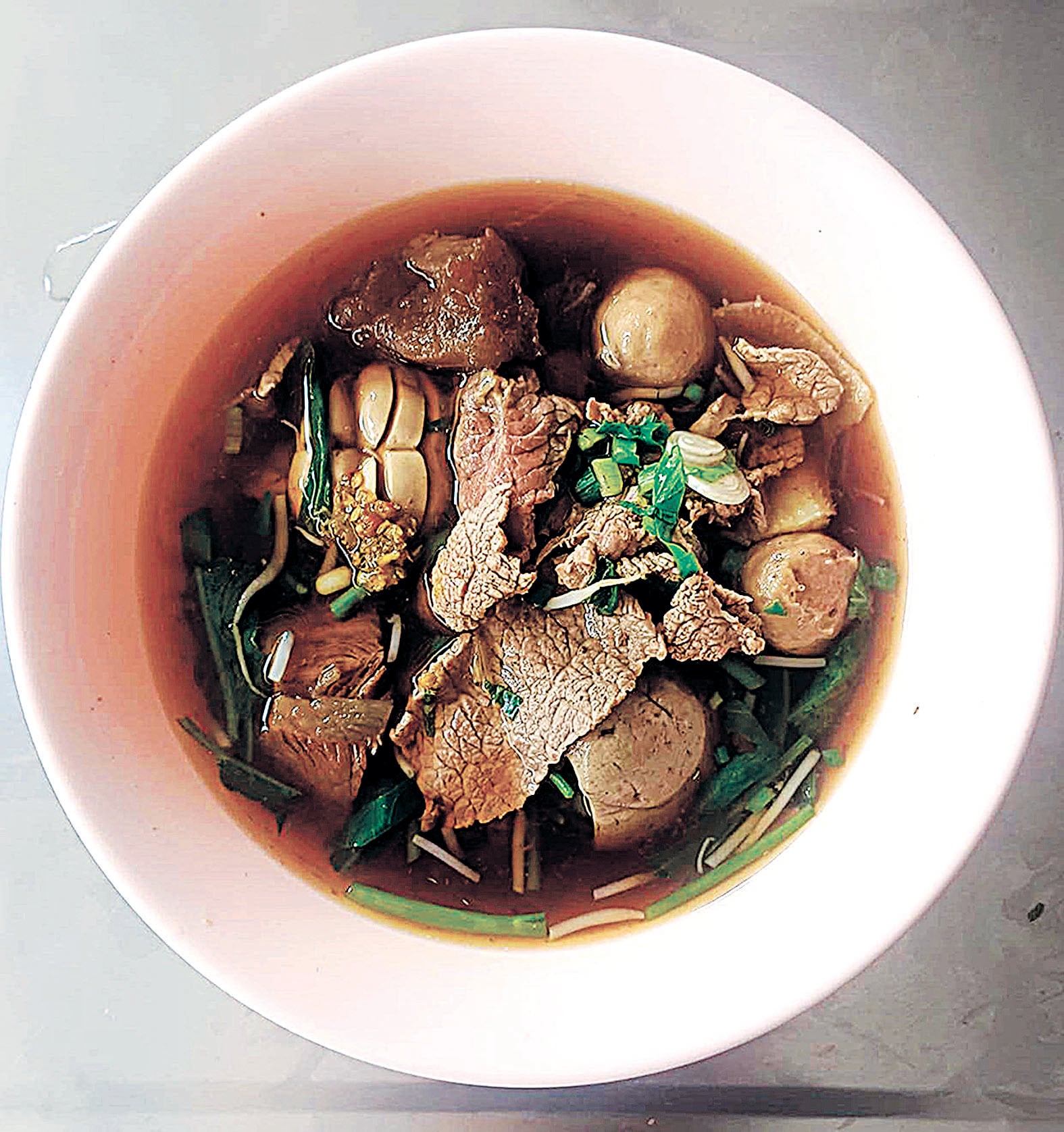ก๋วยเตี๋ยวเจ๊กเม้ง น้ำซุปใช้อบ เชย-โป๊ยกั๊กและพริกไทยเม็ด ต้มกับเนื้อวัว, เอ็นวัว และเครื่องในวัวให้หอมกรุ่น