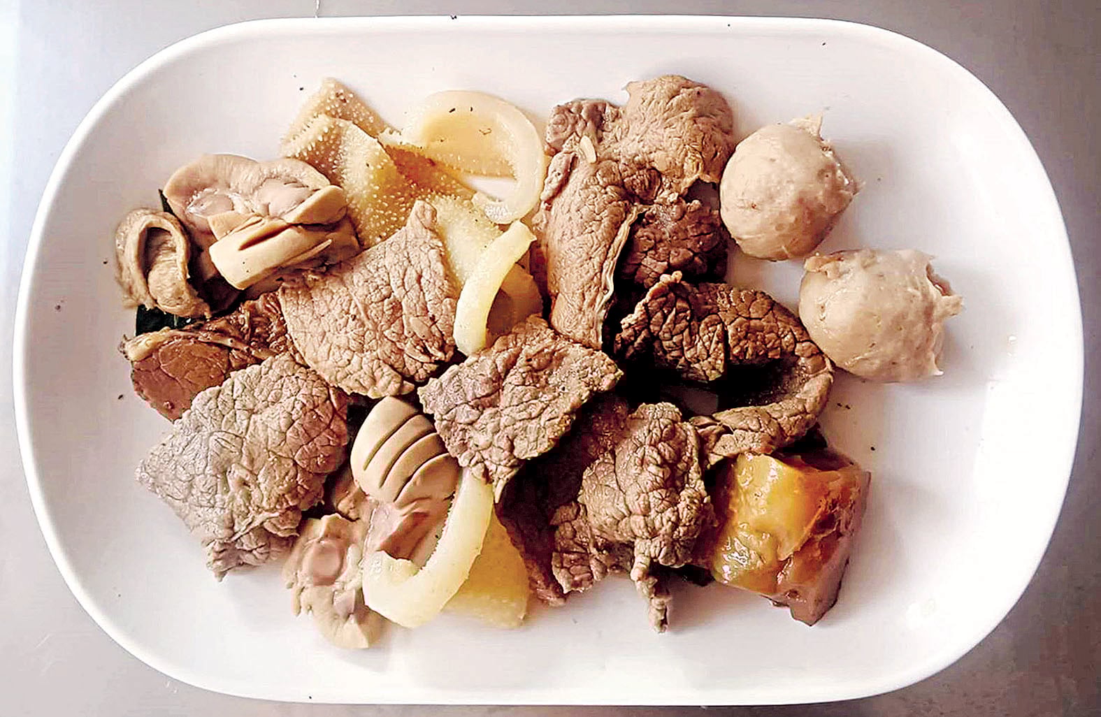 แล้วหมักพริกไทยให้นุ่ม ส่วนเครื่องในวัวล้างสะอาดไม่มีกลิ่นคาว