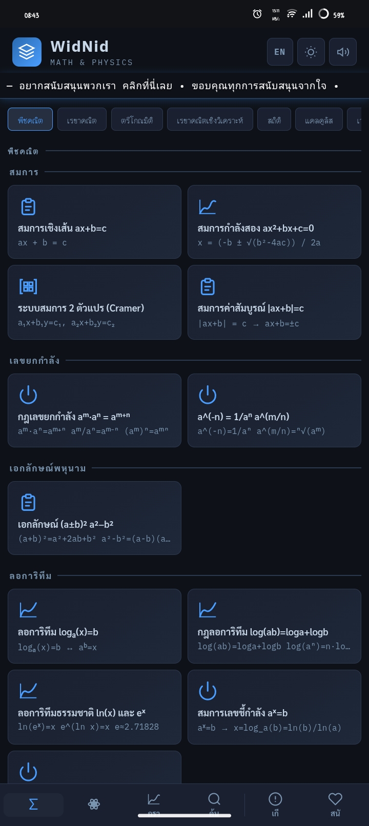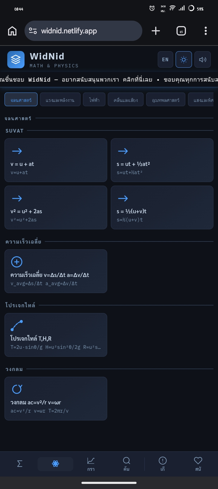 ผมมีเว็บคำนวณคณิต + ฟิสิกส์ ม.ปลาย ที่ “แสดงวิธีทำทีละขั้น” ลองทำขึ้นมาเองครับ