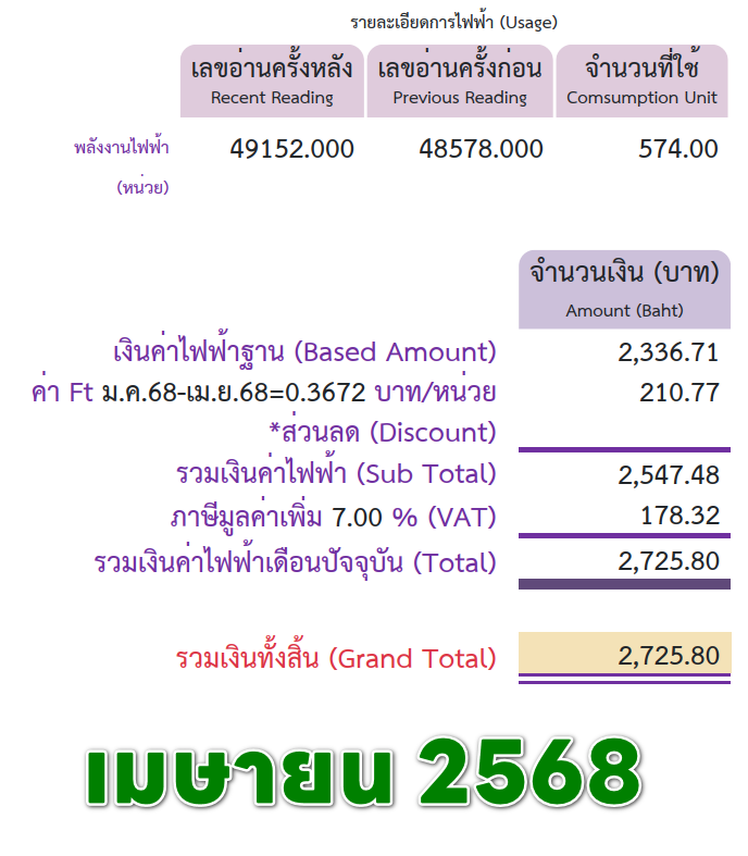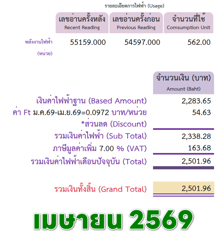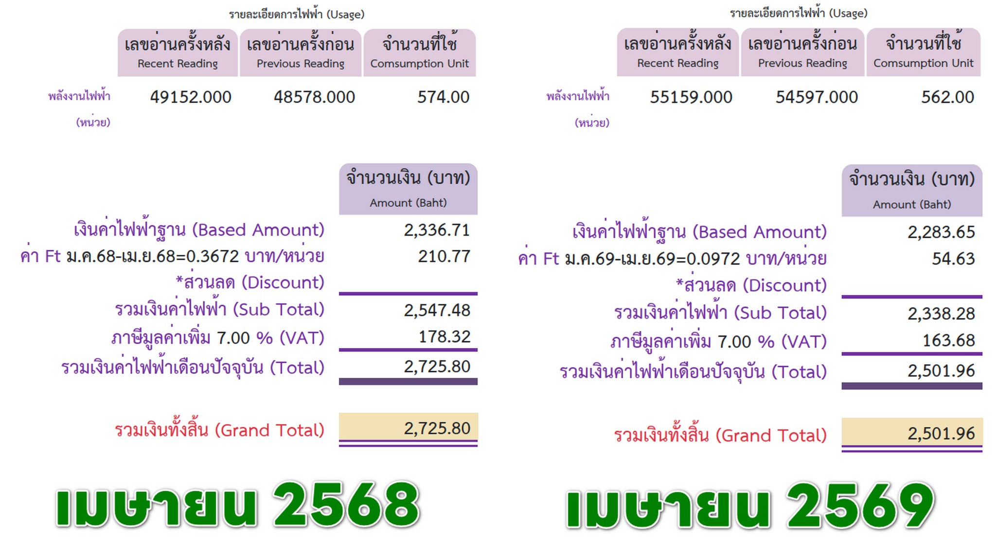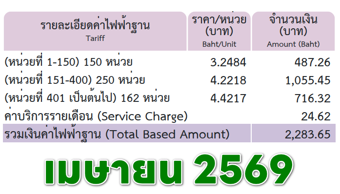 ส่วน ค่าไฟงวด พ.ค. – ส.ค. 2569