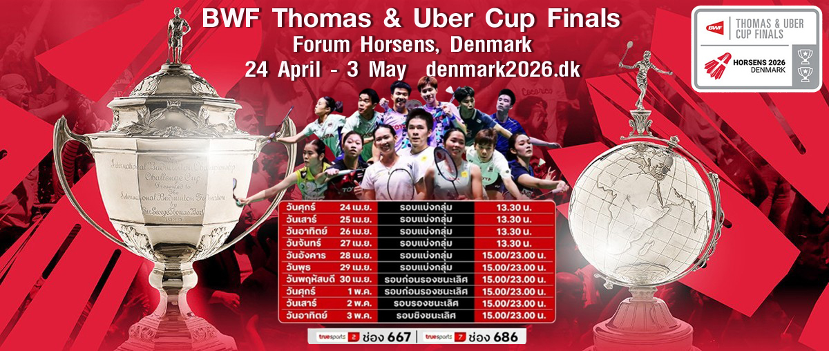 เชียร์สด ! BWF Thomas & Uber Cup Finals 2026 : รอบแบ่งกลุ่ม Day 1 [24 เม.ย. 69] (คู่แรก 13.30 น.)