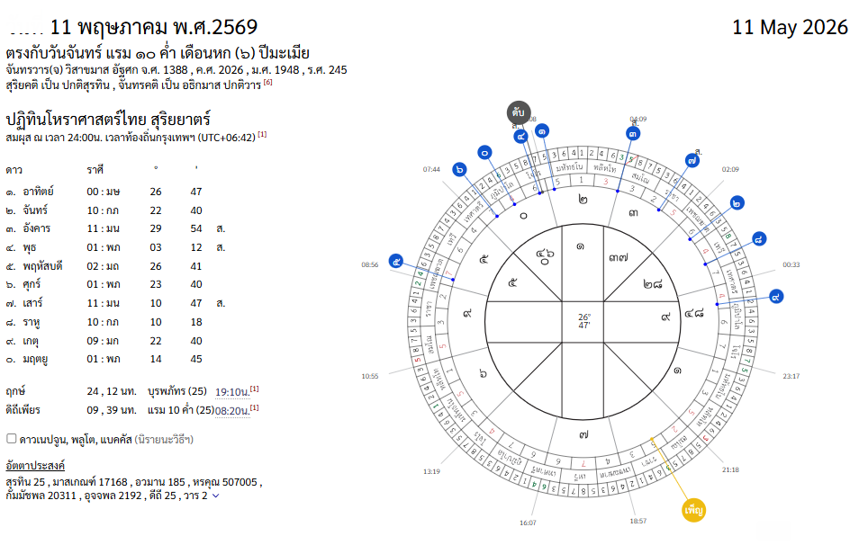ลองดูรูปราศีจักรข้างล่างก็ได้  ของวันที่ 11 พฤษภาคม พ.ศ.2569  ยังไม่ต้องอ่าน   ว่ามีอะไรที่แปลกไหม
