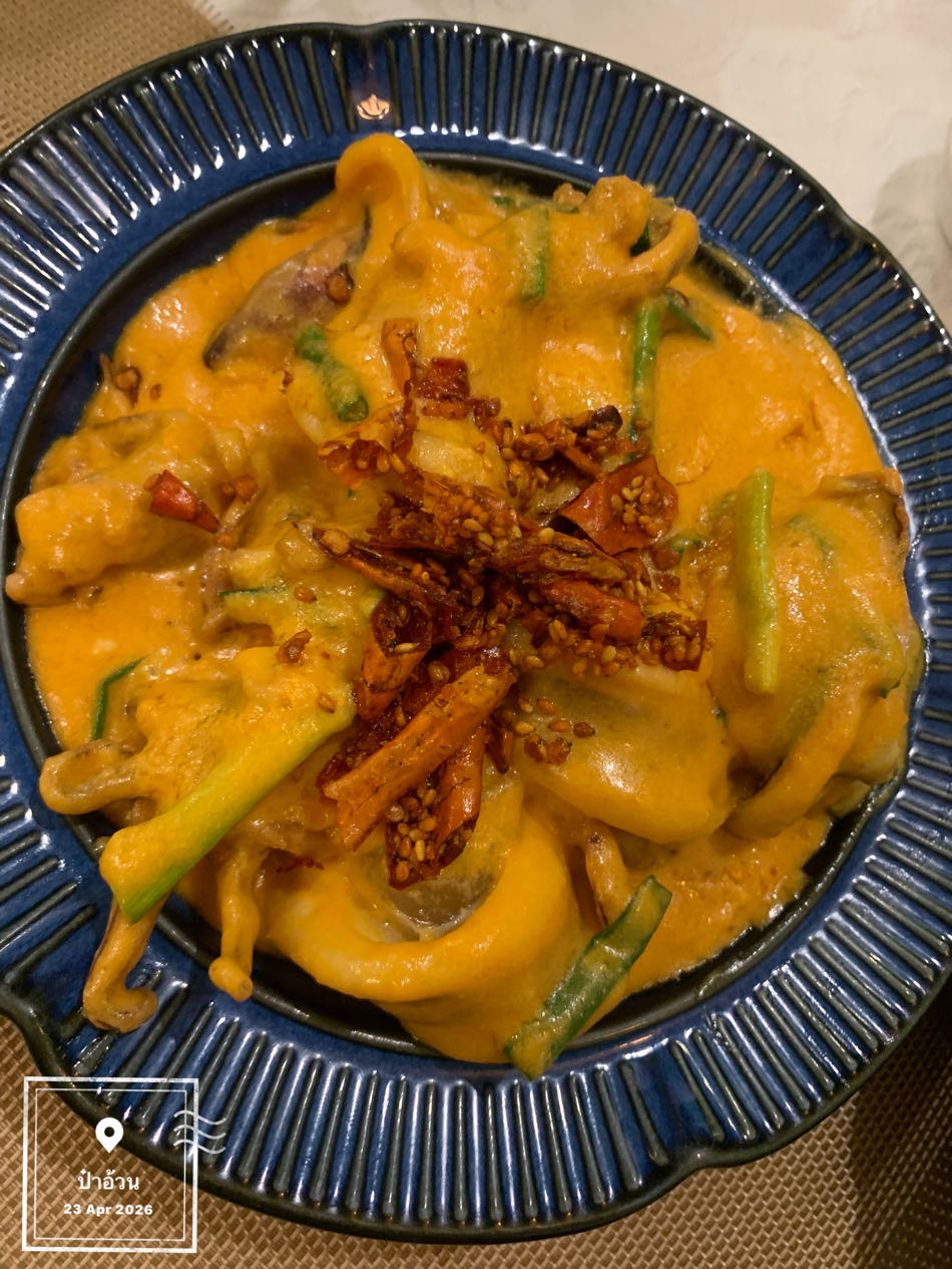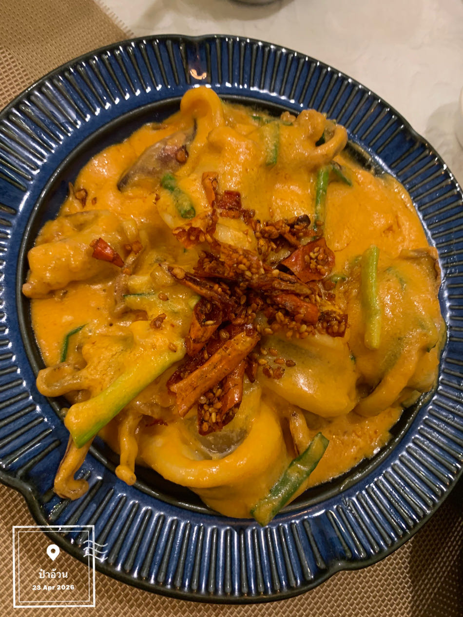 ซอสไข่เค็ม นัวมันครีมมาก โรยพริกทอดกรอบ