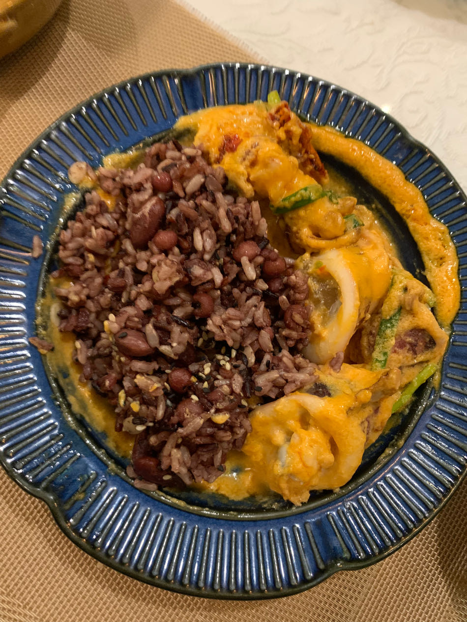 เอาข้าวกล้องใส่หมึกผัดซอสไข่เค็ม