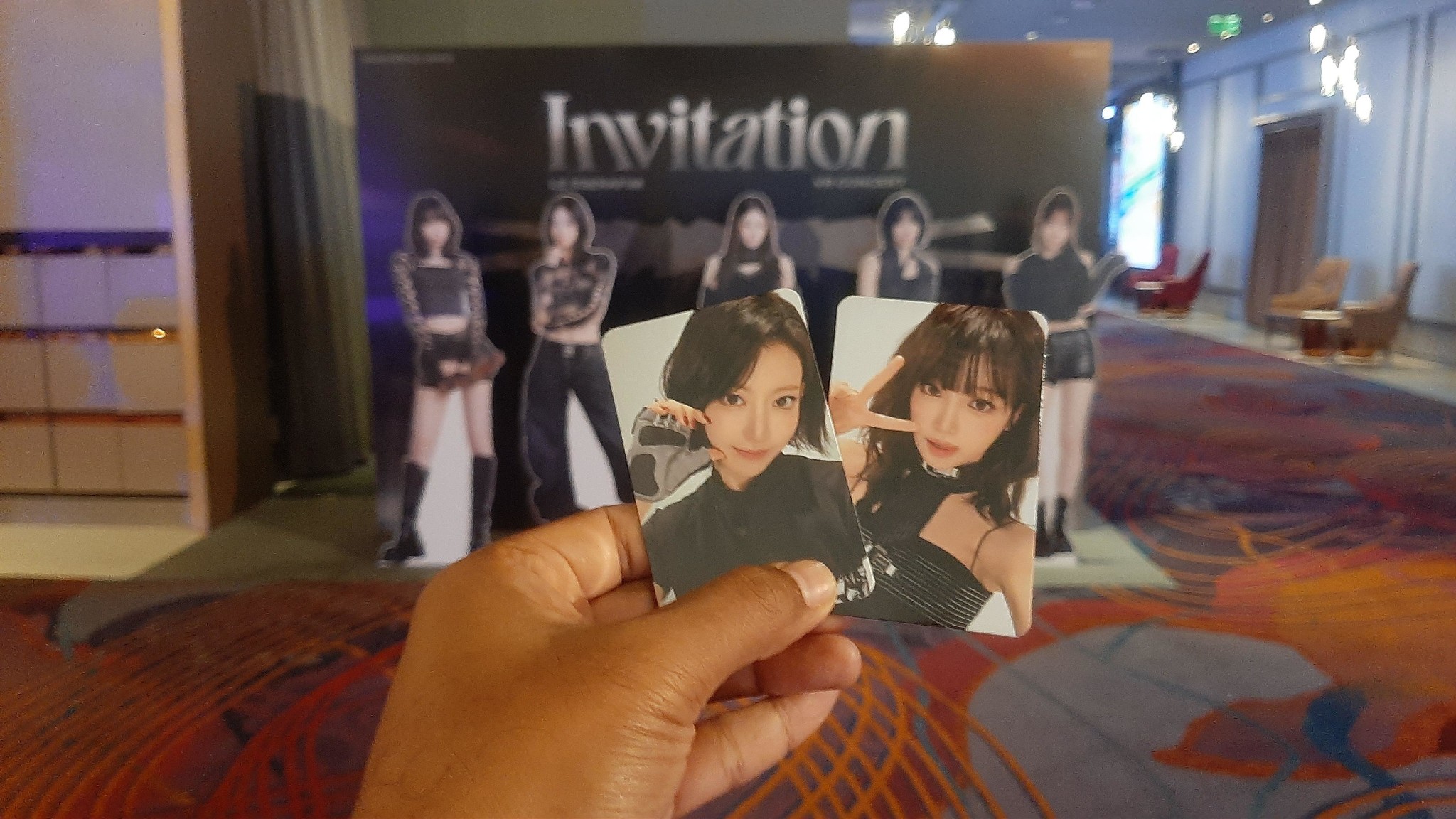 หลังจากที่ได้รับตั๋วที่เครื่องแล้ว ให้ไปที่โต๊ะของเจ้าหน้าที่บริเวณหัวเสา เพื่อที่จะสุ่มจับการ์ด เราจะได้การ์ด 2 แบบ แบบเดี่ยว 1 ใบ แบบกลุ่ม 1 ใบ รอบแรกผมสุ่มได้ซากุระ รอบ 2 ได้ยุจิน โชคดีที่ได้เจอน้องเป็นเมนของยุนจินสุ่มจับการ์ดของแชวอนพอดี เลยได้โอกาสขอแลก ขอบคุณน้องคนนั้นมากๆ โชคดีสุดๆ เลยครับ 😭🙏