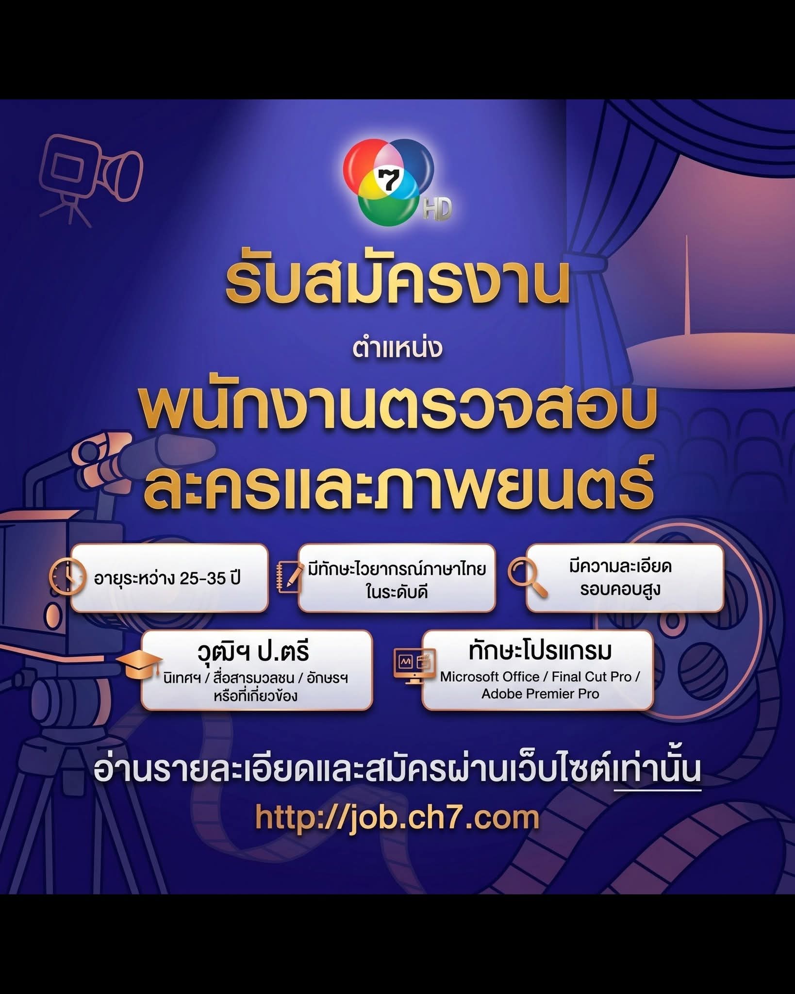 ช่อง7 เปิดรับสมัครงานผู้ที่สนใจร่วมงานกับเรา