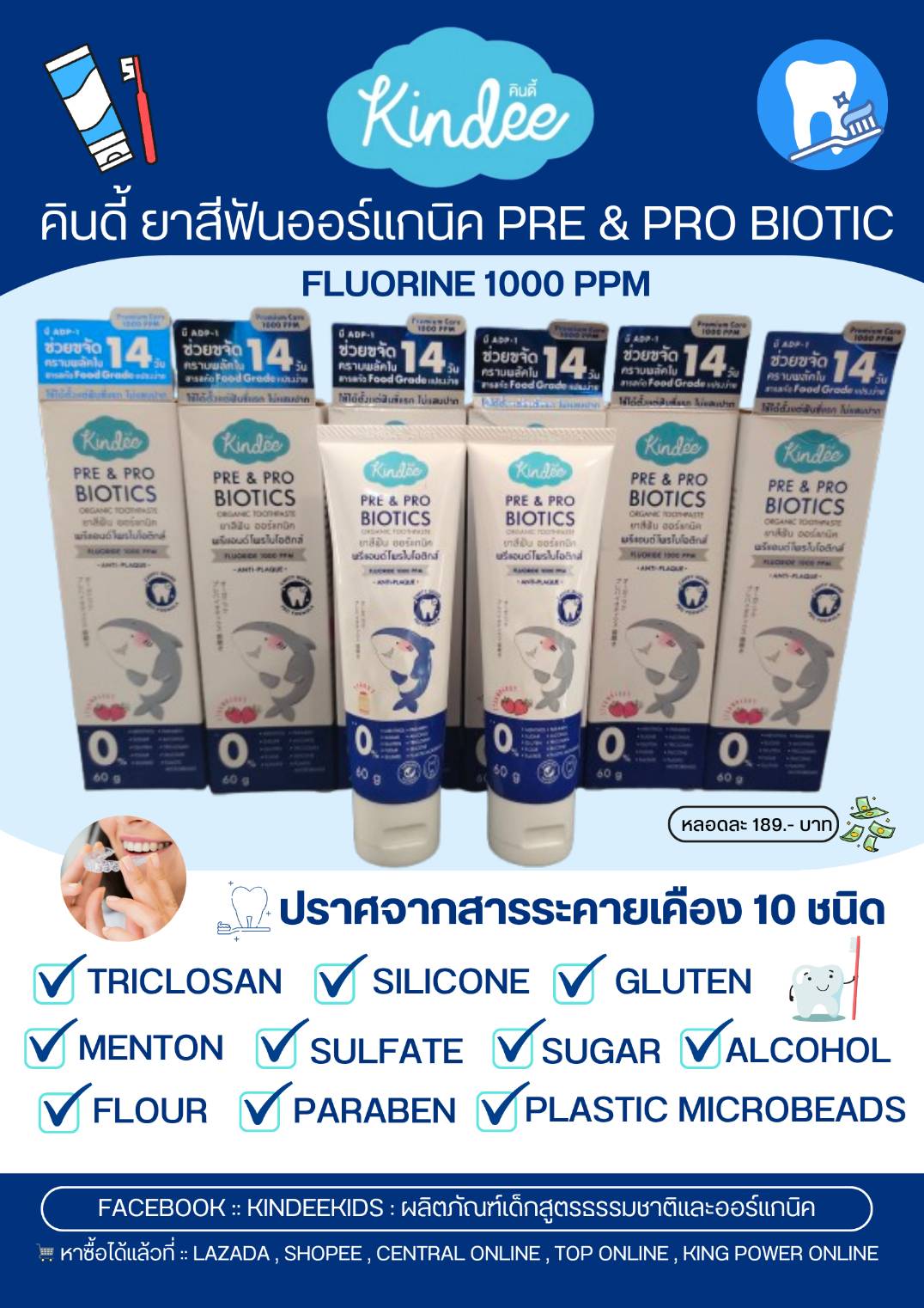 🎀 Kindee ยาสีฟันออร์แกนิค สูตรพรีแอนด์โพรไบโอติกส์ 🪥 ผสมฟลูออไรด์ 1,000 พีพีเอ็ม ปริมาณ 60 กรัม ผสานนวัตกรรมจากธรรมชาติ 🍃 อ่อนโยนต่อช่องปากของลูกน้อย 💋 ใช้ได้ตั้งแต่ฟันซี่แรก 🦷 ไม่แสบปาก ช่วยลดการสะสมของแบคทีเรีย 🧬 และป้องกันฟันผุได้อย่างมีประสิทธิภาพ ⭐👍🏻