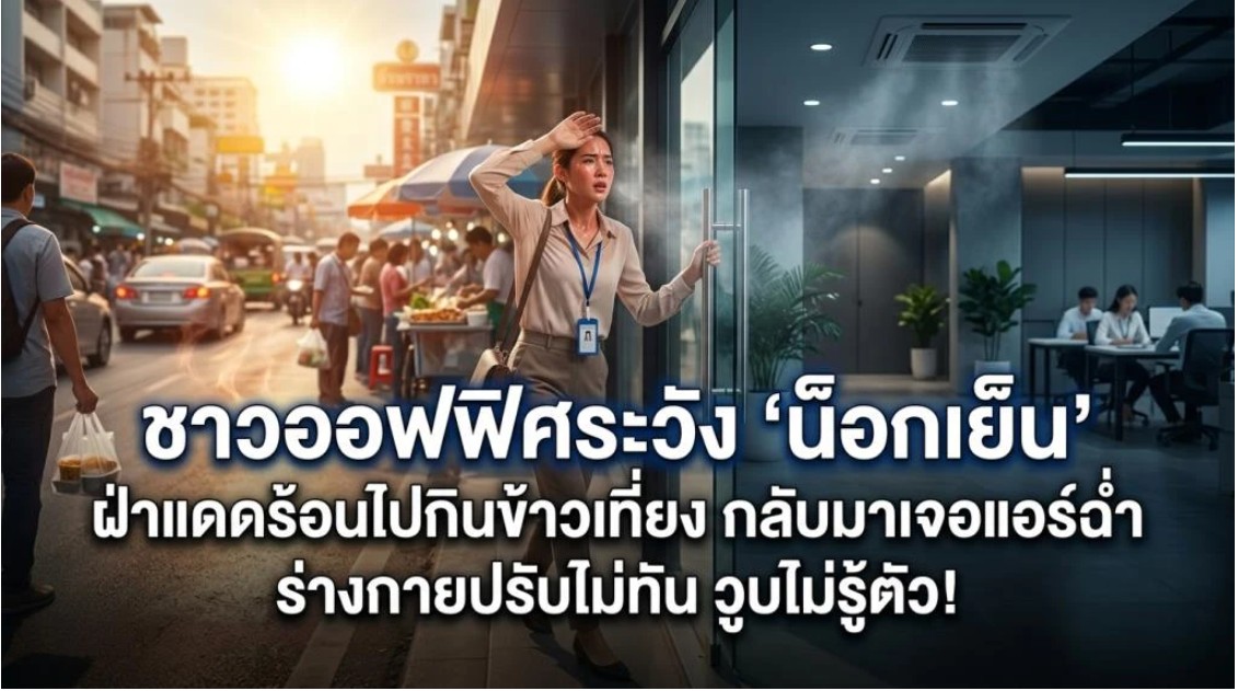 ชาวออฟฟิศระวัง ‘น็อกเย็น’ ฝ่าแดดร้อนไปกินข้าวเที่ยง กลับมาเจอแอร์ฉ่ำ ร่างกายปรับไม่ทัน วูบไม่รู้ตัว!