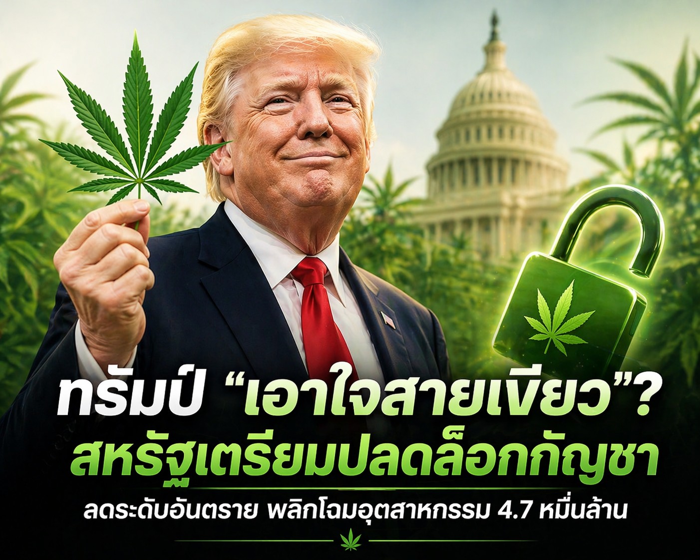 ทรัมป์ “เอาใจสายเขียว”? สหรัฐเตรียมปลดล็อกกัญชา ลดระดับอันตราย เขย่าอุตสาหกรรม 4.7 หมื่นล้านดอลลาร์