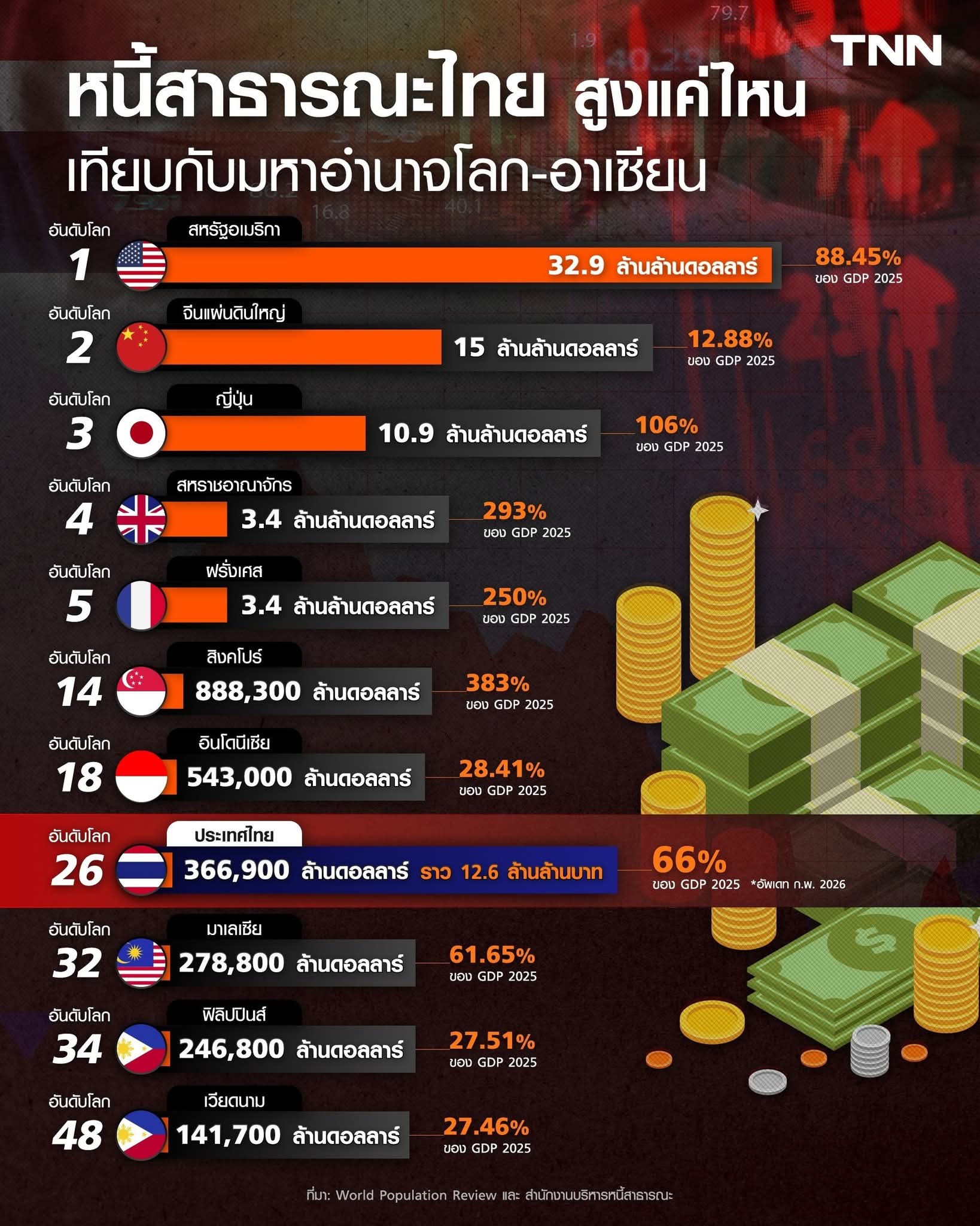 หนี้สาธารณะไทย สูงแค่ไหน เทียบกับมหาอำนาจโลก-อาเซียน