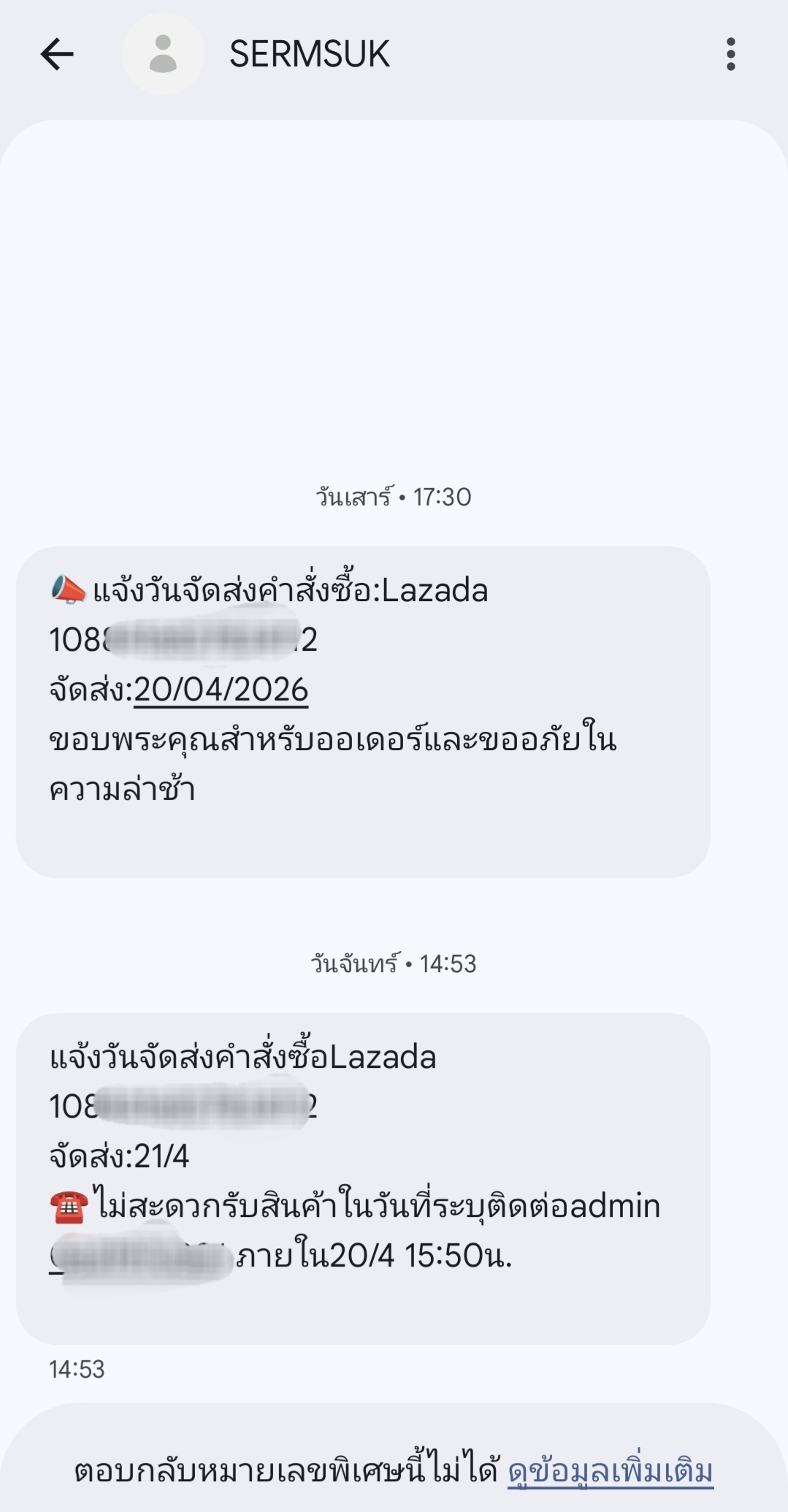 สั่งไปตั้งแต่วันที่ 10 เมษายน 2569 จนตอนนี้ยังไม่ได้รับของเลย ถามแอดมินก็ตอบปัดส่งๆเดี๋ยวประสานงานให้แล้วก็เงียบ แล้วก็เลื่อนไปเรื่อย