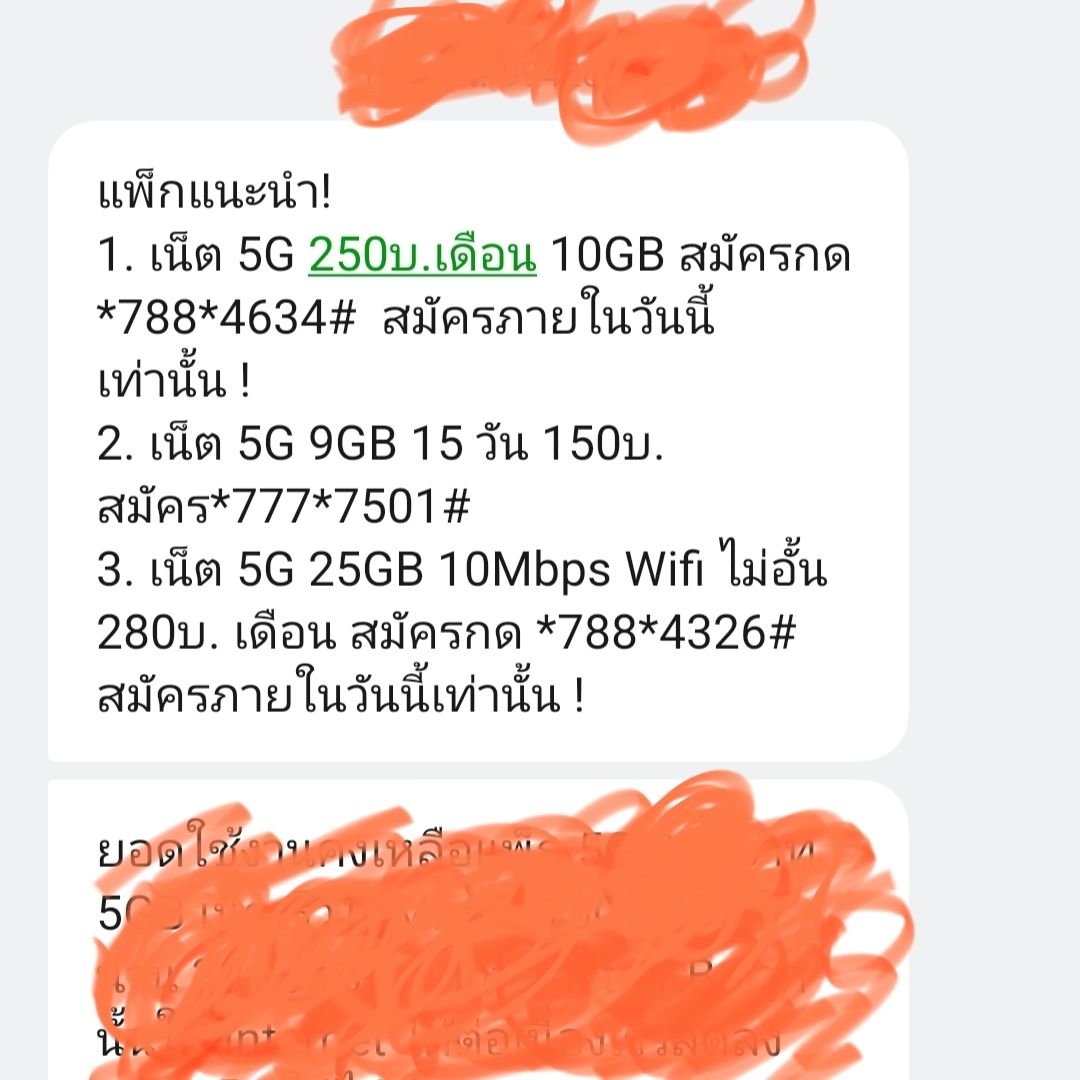 แพ็กเกจเสริม 300 บาท (รวม VAT) เน็ต 5G จำนวน 20GB ต่อด้วย 15 Mbps (70 GB) โทรฟรีทุกเครือข่าย นาน 6 เดือน - 5G (เร็ว 1Gbps) 20GB จากนั้นเร็ว 15Mbps - หากใช้อินเท