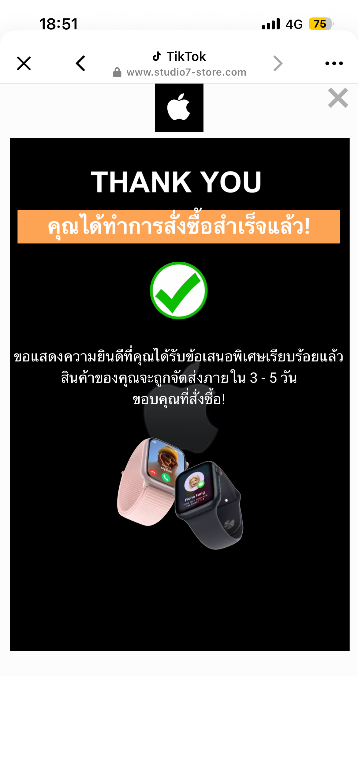 พอดีกดสั่งรองเท้าเข้าไปในเว็บพอใส่ที่อยู่เสร็จมันขึ้นว่าสั่งซื้อแล้ว แล้วก็เอะใจ+กับสั่งผิดขนาด เลยจะไปยกเลิก พอเข้าไปอีกทีมันเด้งหาย เลยทักfacebook ของเว็บนี้ไ