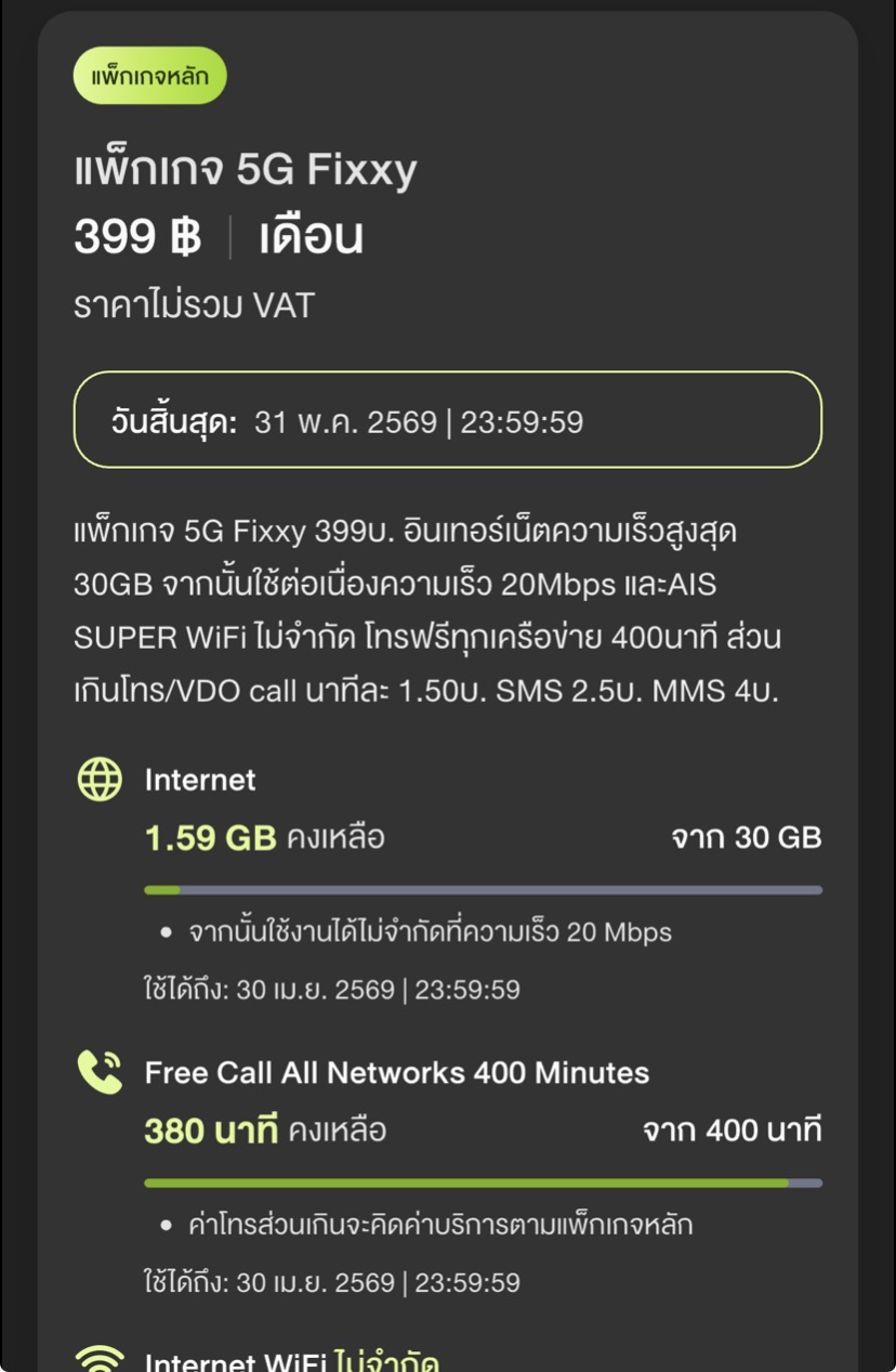 ปัจจุบันเราใช้เน็ตโปร ราคา 399 ไม่รวม VAT ความเร็วสูงสุด 10mbps Wi-Fiไม่จำกัด(โทรฟรีในเครือข่ายไม่จำกัดครั้งละไม่เกิน30นาที โทรเครือข่ายอื่น 200 นาทีอยู่ รู้สึกว่าความเร็วน้อยไปเมื่อเทียบกับโปรที่เพื่อนใช้อยู่