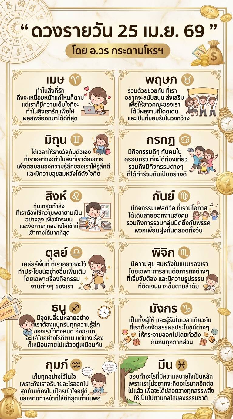 Ψ ☀ ดวงวันนี้ 25 เมษายน พ.ศ. 2569 โดย อ.วร กระดานโหรฯ ☀ 卐 ♈♉♊♋♌♍♎♏♐♑♒♓