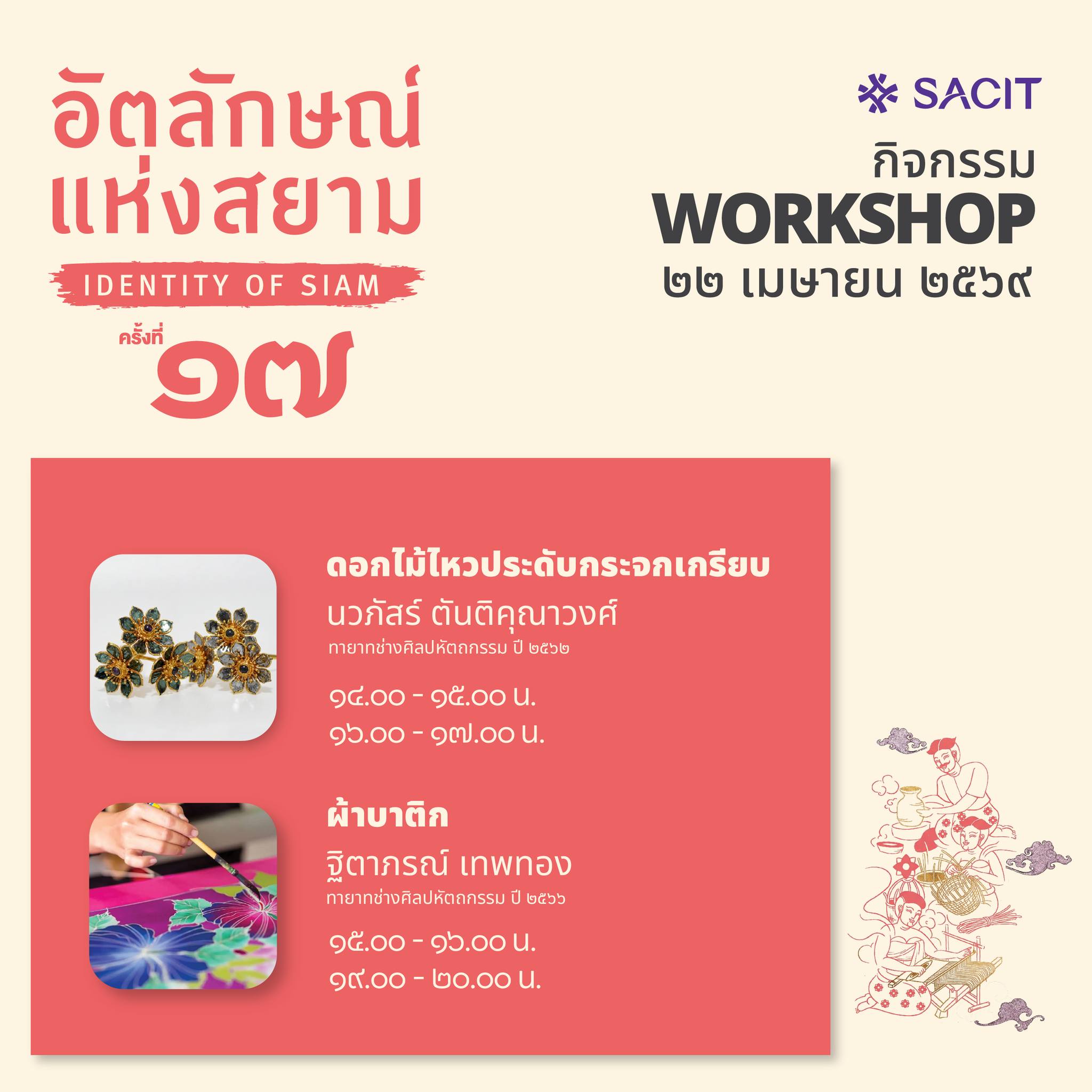 Workshop ดอกไม้ไหวประดับกระจกเกรียบ ในงานอัตลักษณ์แห่งสยาม ครั้งที่ 17 สถาบันส่งเสริมศิลปหัตถกรรมไทย (องค์การมหาชน)