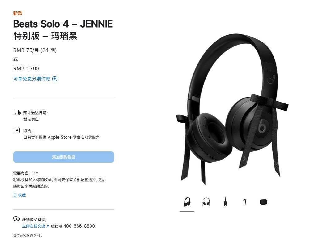 หูฟัง JENNIE x Beats Solo 4 Special Edition สี Onyx Black ล่าสุดตอนนี้ SOLD OUT แล้วบน Apple Store หลายประเทศ