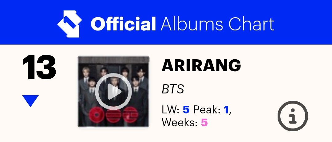 ✨ อัลบั้ม 'ARIRANG' ของ BTS อยู่อันดับ #13 บน UK Official Albums Chart [สัปดาห์ที่ 5]