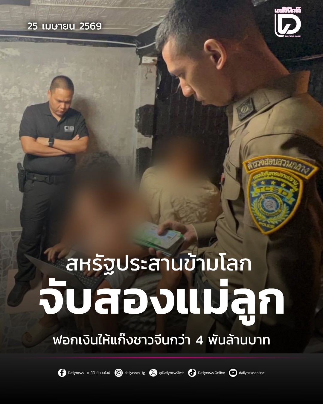 หน่วยความมั่นคงแห่งมาตุภูมิสหรัฐอเมริกา ประสานตำรวจ ปอท. บุกรวบสองแม่ลูก เปิดบริษัทบังหน้ารับฟอกเงินแก๊งชาวจีนข้ามโลกผ่านเงินคริปโต พบหมุนเวียนกว่า 4,000 ล้านบาท