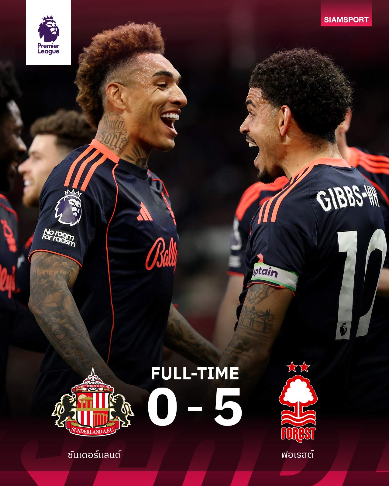บีบไก่-ค้อนหนีตาย!  ฟอเรสต์ งัดฟอร์มโหดบุกถล่ม ซันเดอร์แลนด์ ยับเยิน 5-0 อีกอร์ เชซุส มีส่วนร่วมถึง 3 ประตู คว้าสามแต้มล้ำค่าเพิ่มโอกาสอยู่รอดปลอดภัยหลังมีเพิ่ม 39 คะแนน รั้งอันดับ 16 หนีเวสต์แฮม อันดับ 17 ถึง 6 แต้ม และทิ้งสเปอร์ส โซนตกชั้นอันดับ 18 ถึง 8 คะแนน แต่แข่งมากกว่าหนึ่งนัด