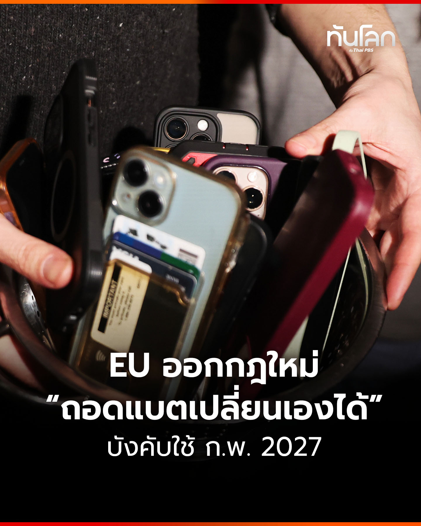 EU ออกกฎใหม่ “ถอดแบตเปลี่ยนเองได้” บังคับใช้ ก.พ. 2027