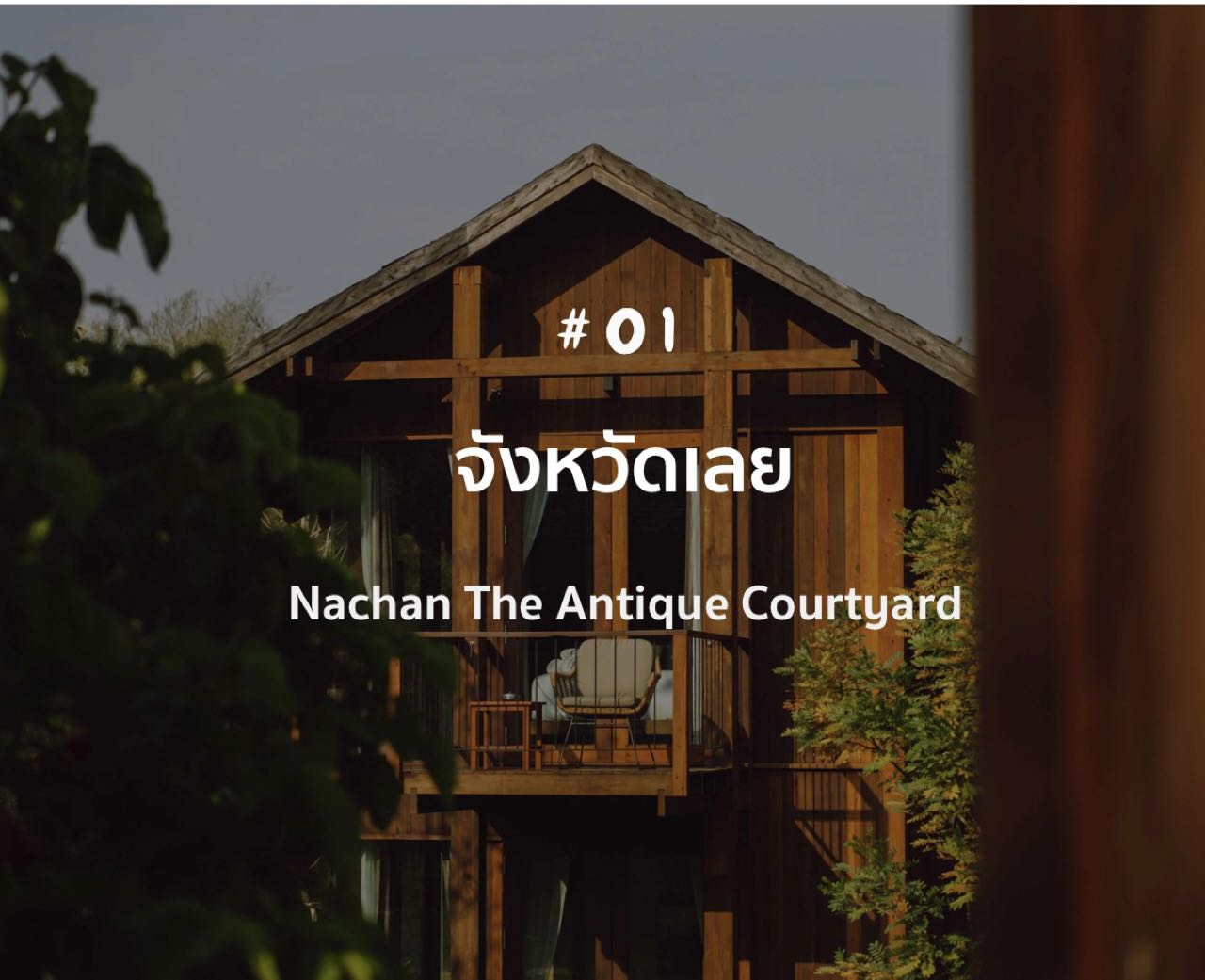 1️⃣เข้าพักที่ ‘Nachan The Antique Courtyard’ บ้านไม้ที่สร้างจากไม้เก่าทั่วประเทศไทยและวัสดุธรรมชาติ ให้ความรู้สึกอบอุ่น ดูกลมกลืน ไม่แปลกแยกจากสภาพแวดล้อมโดยรอบ บ้านพักแต่ละหลังได้รับแรงบันดาลใจจากบ้านไม้พื้นถิ่นในจังหวัดเลย และทุกหลังก่อสร้างโดยช่างท้องถิ่นทั้งสิ้น