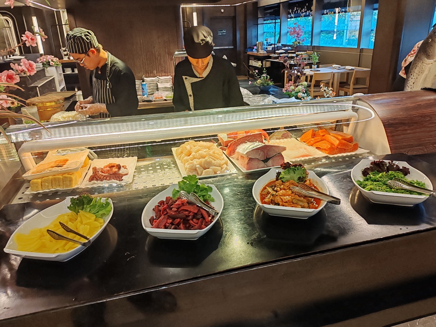 ...เห็นโปรโมตห้องอาหารใน FB มานานแล้ว เพิ่งมีโอกาสได้มาลอง หัวละ 399บ. เป็นบุฟเฟ่ต์แบบสั่งจากเมนู มีรายการอาหาร 50กว่ารายการ และมีที่อยู่นอกเมนู เป็นติ่มซำ 3-4ร