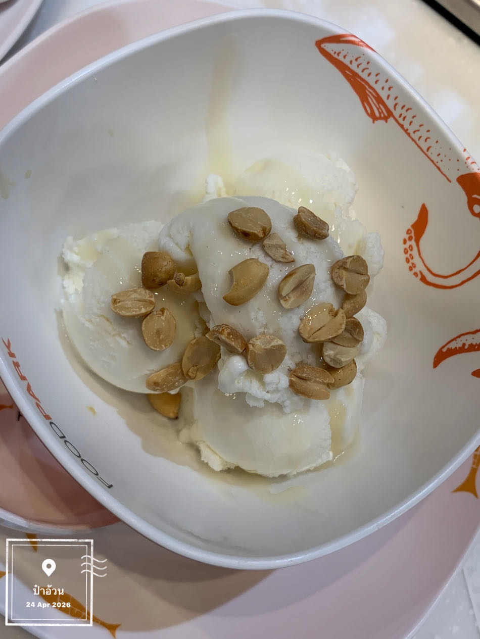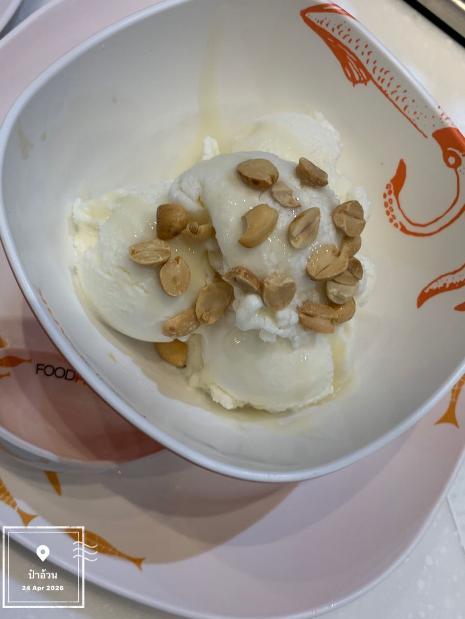 ไอติมกะทิราดนมข้นโรยถั่วคั่ว