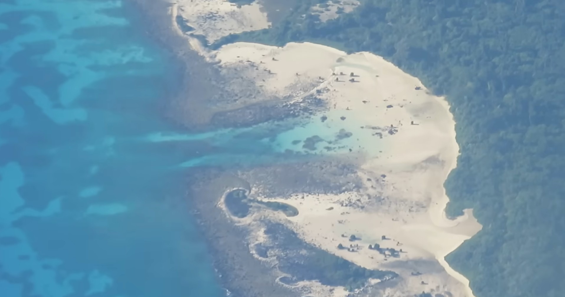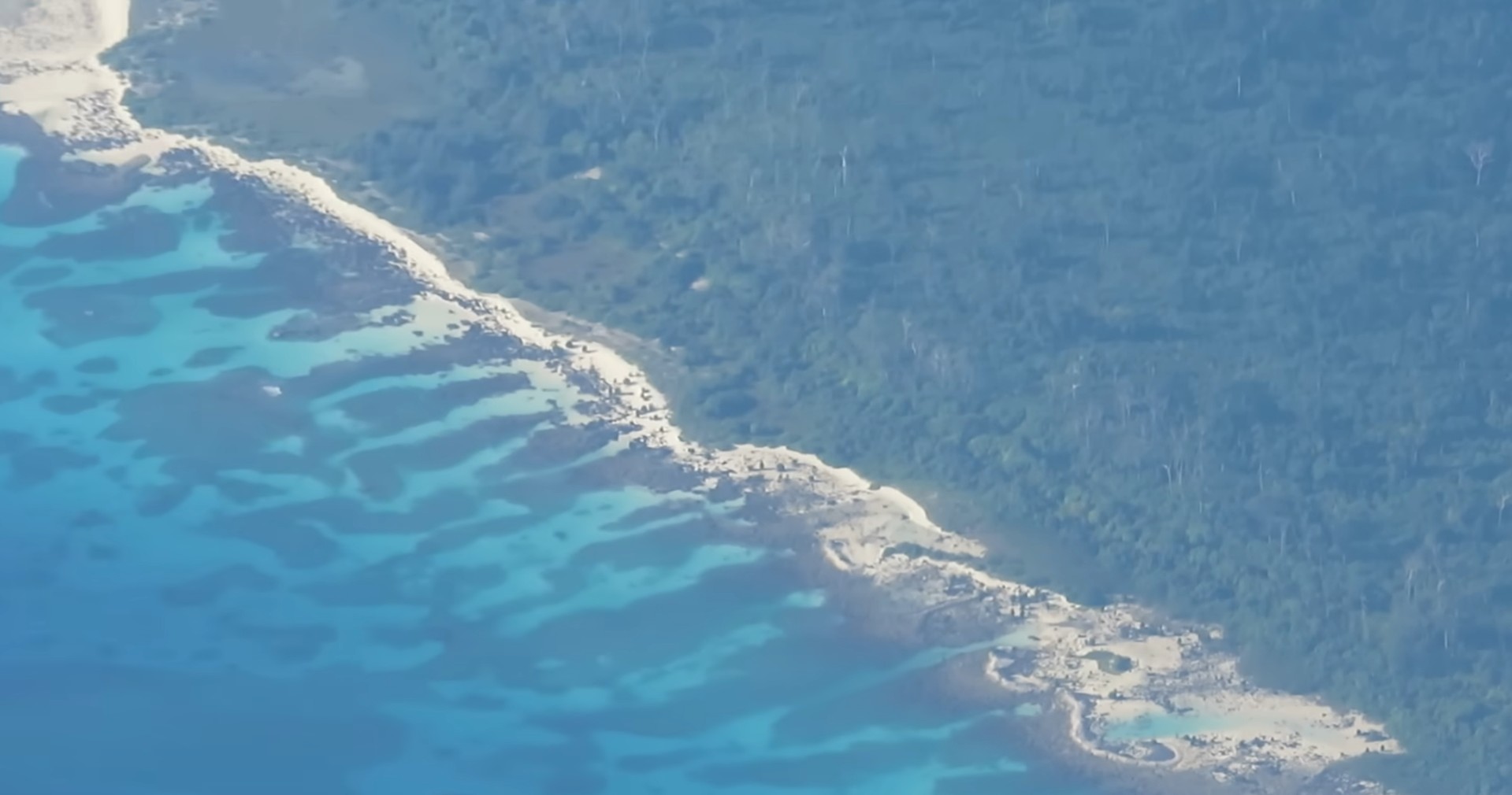 บนเกาะนอร์ทเซนติเนลไม่มีต้นมะพร้าวเลย มีแต่ต้นไม้ป่าดิบชื้นเต็มไปหมดตลอดแนวชายฝั่ง