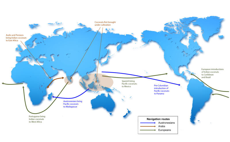 หรือเป็นเพราะบนเกาะมันเป็นป่าดงดิบหนาทึบเอามากๆ มันไม่เหมาะที่จะให้ต้นมะพร้าวเจริญเติบโตทั่วชายหาดแบบเกาะทั่วไปได้ สภาพแวดล้อมมันไม่เอื้อให้ต้นมะพร้าว หรืออีกสาเหตุ คงเป็นเพราะการแพร่กระจายของมะพร้าวที่มีต้นกำเนิดจากเอเชียตะวันออกเฉียงใต้และอินเดีย ไปไม่ถึงบนเกาะนอร์ทเซนติเนลแห่งนี้ละมั้ง ทำให้บนเกาะนี้แทบไม่มีต้นมะพร้าวเลย ที่น่าแปลกคือ เกาะนอร์ทเซนติเนลมันตั้งอยู่ใกล้ๆ แหล่งกำเนิดต้นมะพร้าว ก็คือเอเชียตะวันออกเฉียงใต้และอินเดีย แต่บนเกาะนอร์ทเซนติเนลกลับแทบไม่มีต้นมะพร้าวเลย คงไม่มีชนชาติไหนที่กล้าบ้าบิ่นนำมะพร้าวไปปลูกบนเกาะแห่งนี้แล้วละมั้ง เพราะชนเผ่านอร์ทเซนติเนลต่อต้านโลกภายนอกเอามากๆ