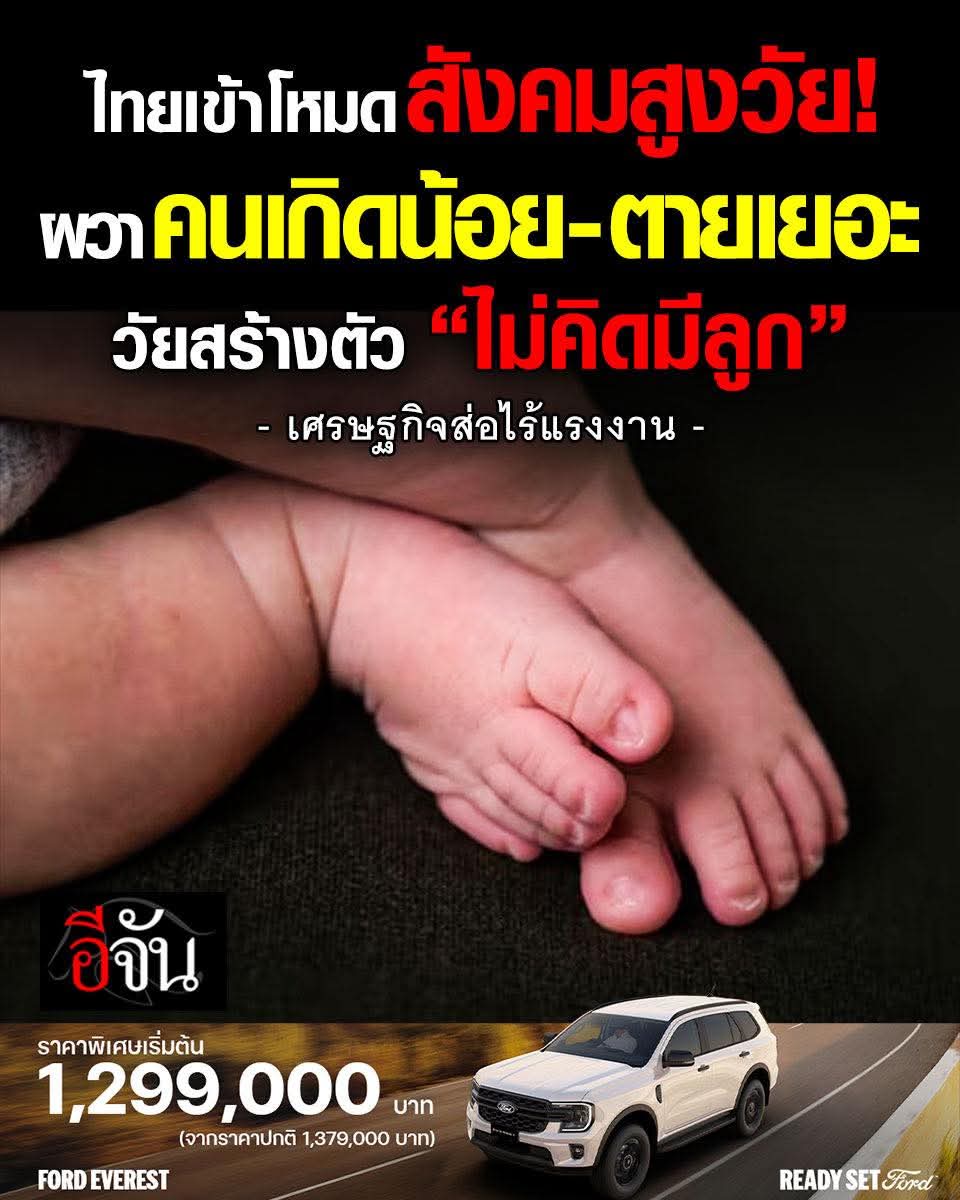 วิกฤตประชากรไทย! อัตราเกิดต่ำสุดรอบ 75 ปี คนตายน้อยกว่าคนเกิดต่อเนื่องปีที่ 5 สัญญาณเตือน “ภัยสังคมสูงวัย” ขั้นสุดที่ต้องรีบแก้ไข หลัง “แรงงานไทย” หายไปหมด กระทบต่อเศรษฐกิจในระยะยาว จี้ “รัฐบาล” แก้สวัสดิการหนุน “ผู้หญิง” อยากมีลูก