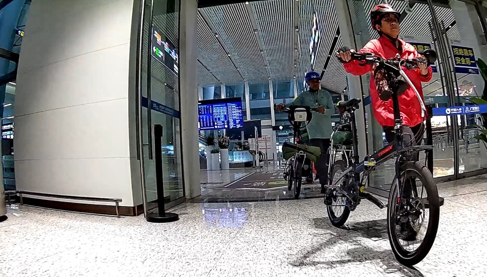 จึงเข็นจักรยานออกจากอาคาร Terminal 1