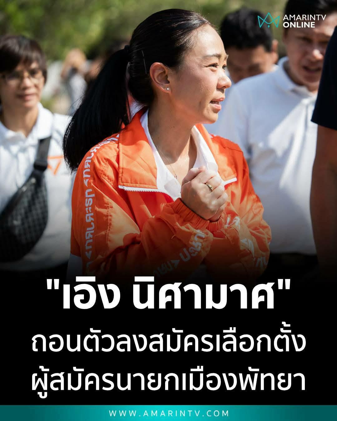 “เอิง นิศามาศ” ประกาศถอนตัว ลงสมัครเลือกตั้ง ชิงนายกเมืองพัทยา ในนามพรรคประชาชน เผยเหตุผลส่วนตัวไม่สามารถทำงานได้อย่างเต็มที่ ขอบคุณประชาชนในพื้นที่ที่เปิดใจ เปิดโอกาสให้มาโดยตลอด